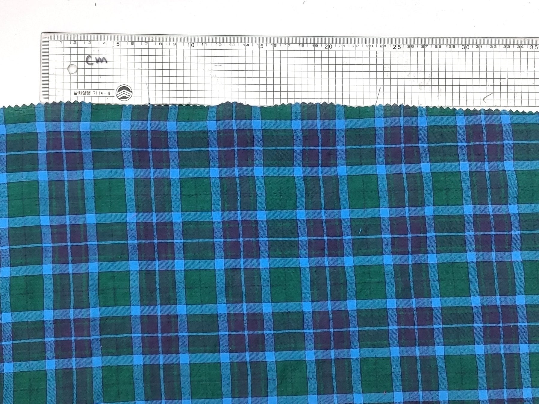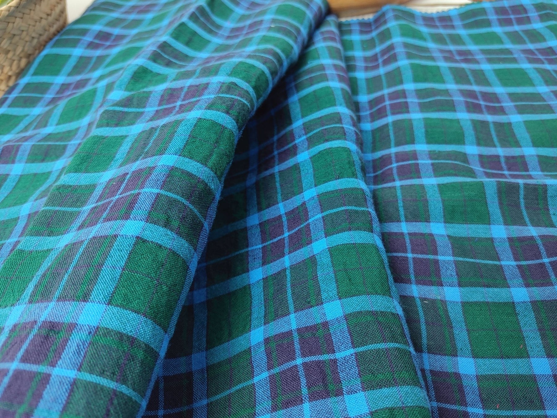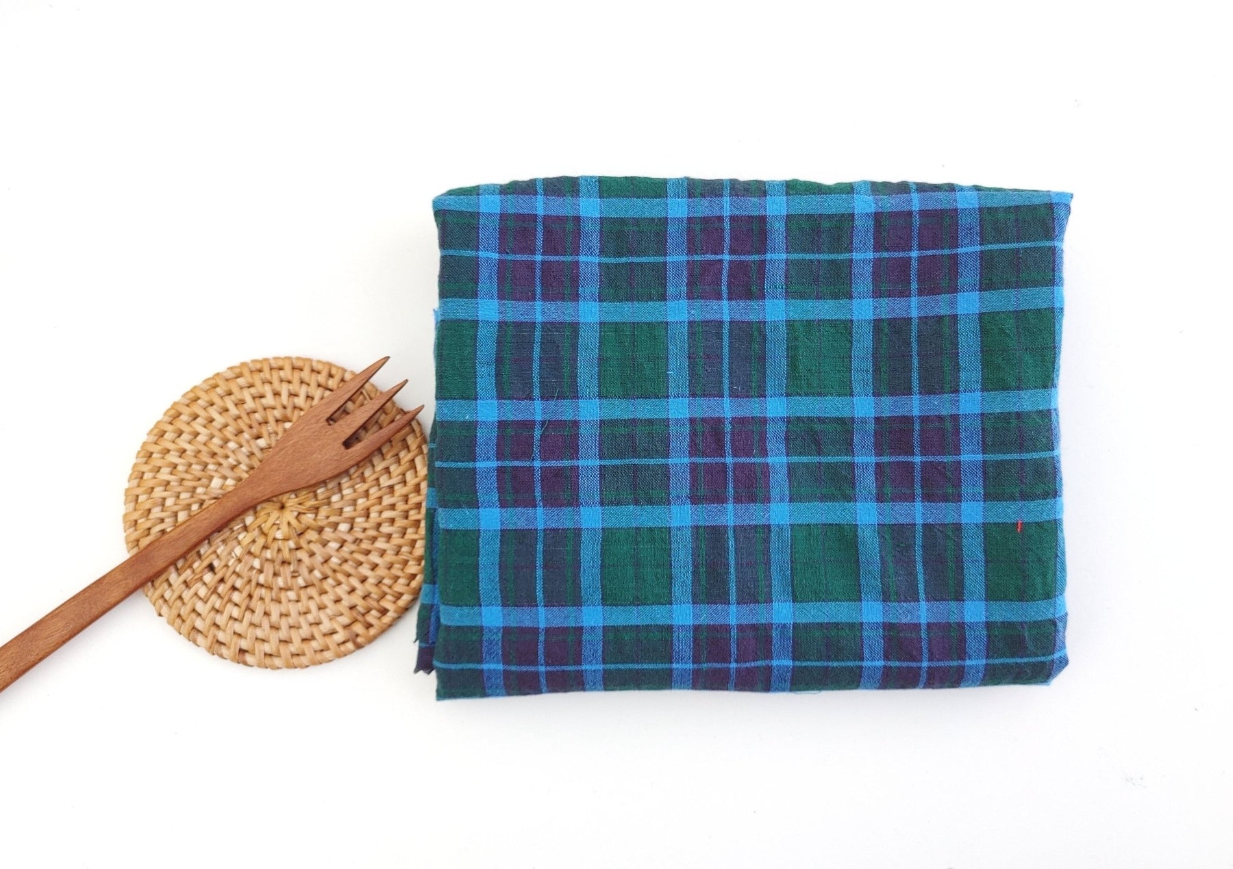 Discover the distinctive charm of our Wrinkled Tartan fabric, where Linen, Cotton, and a hint of Polyurethane (PU) converge to craft a uniquely stylish textile. The 1% PU infusion isn't for stretch but rather to create an appealing wrinkle effect, adding character to this green tartan masterpiece.