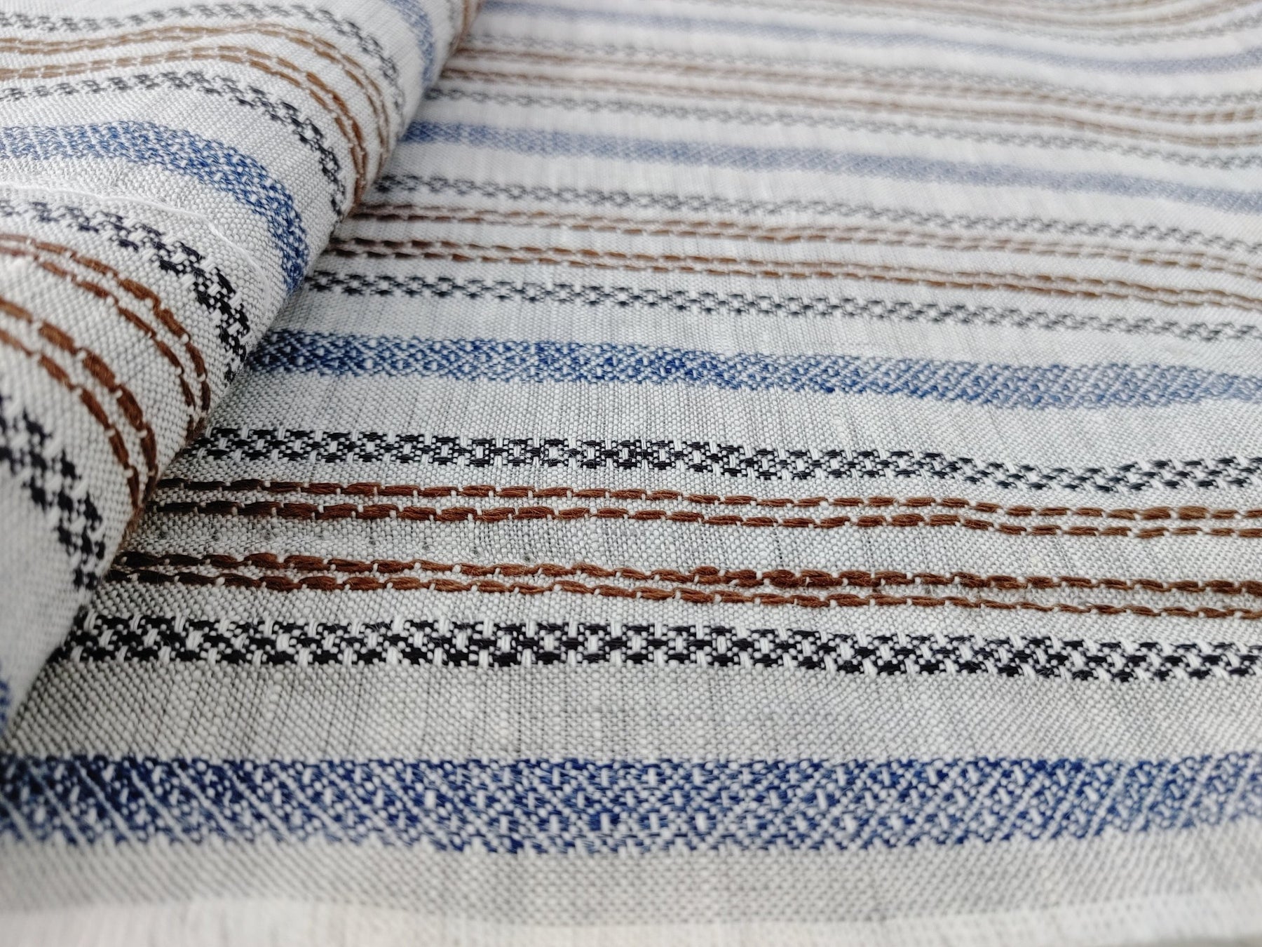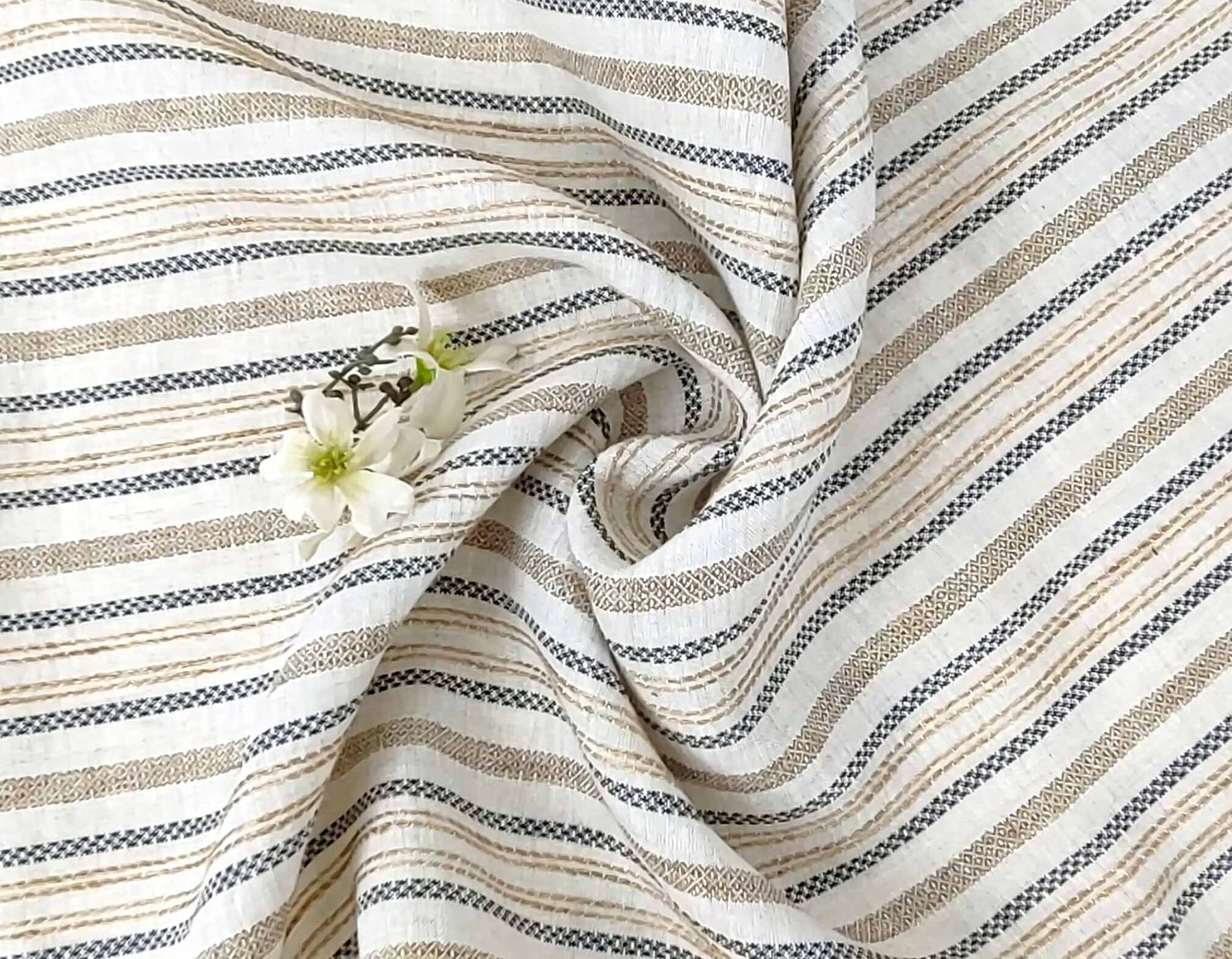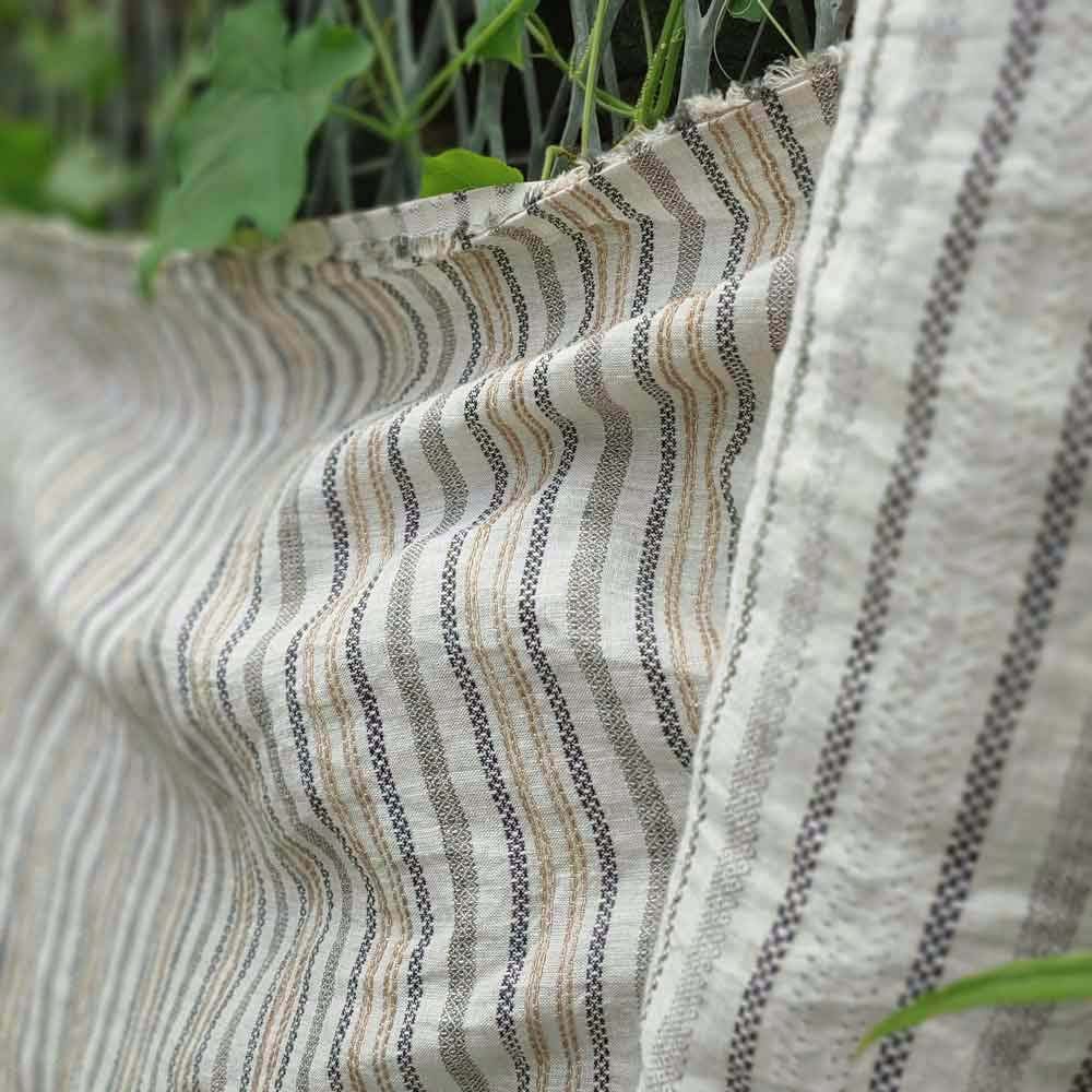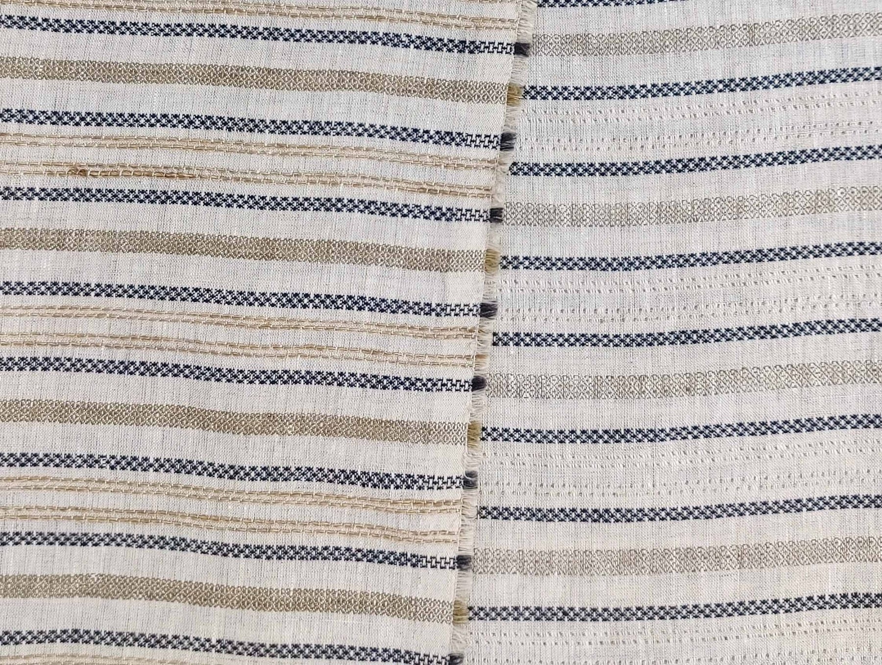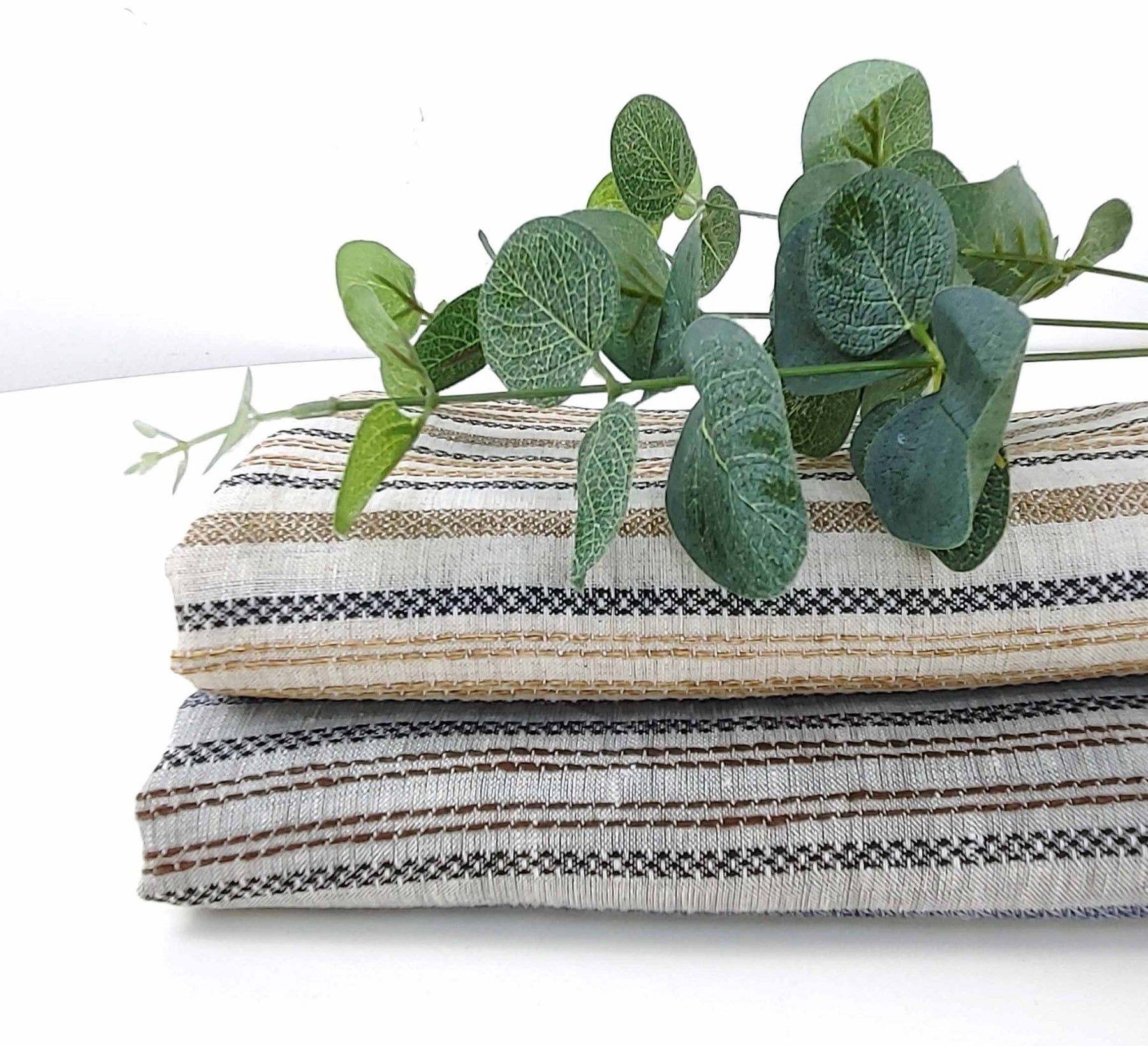 Originally introduced in 2018 and restocked on March 15th, 2024, this fabric is a testament to classic craftsmanship with a modern twist. Made from 100% Linen Fabric Jacquard Stripe, its standout feature is its unique horizontal stripe pattern, achieved through four different weaving structures. While initially slow to gain traction, it has since become a favorite among designers, crafters, and DIY enthusiasts for its versatility and charm.