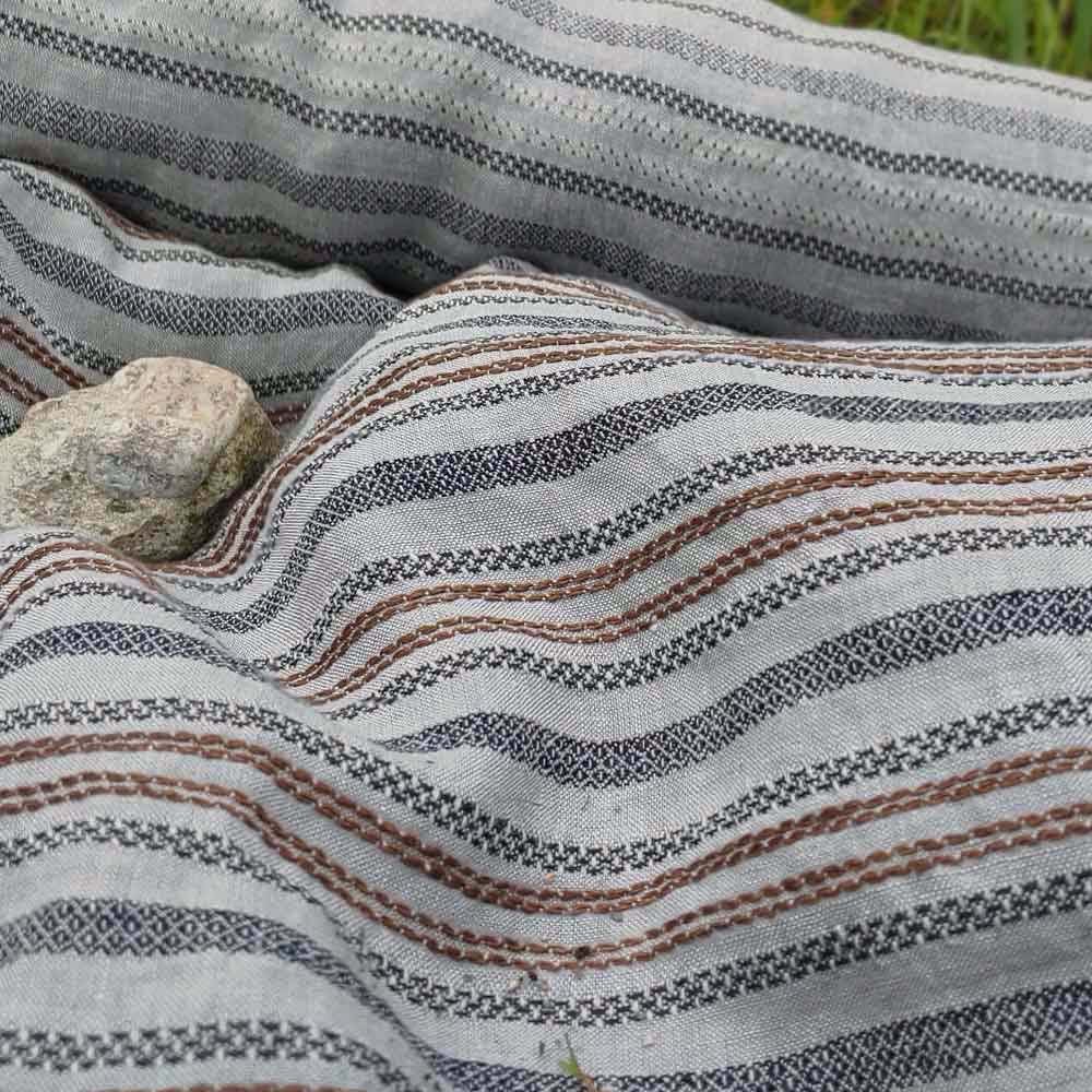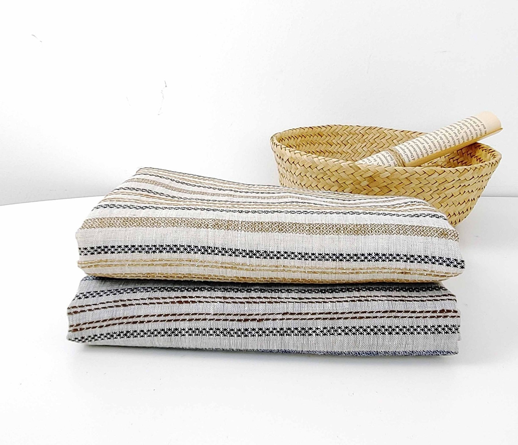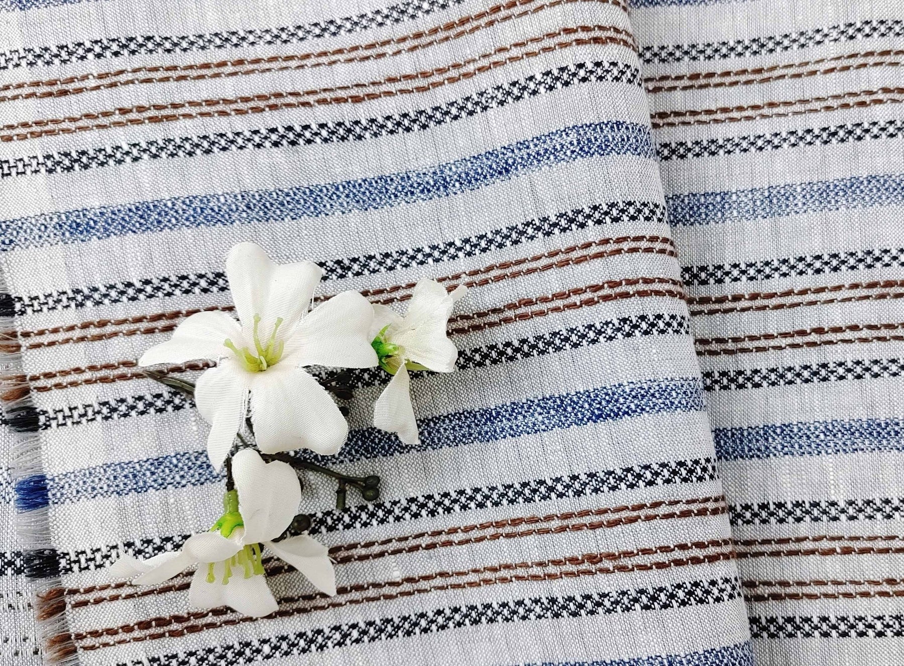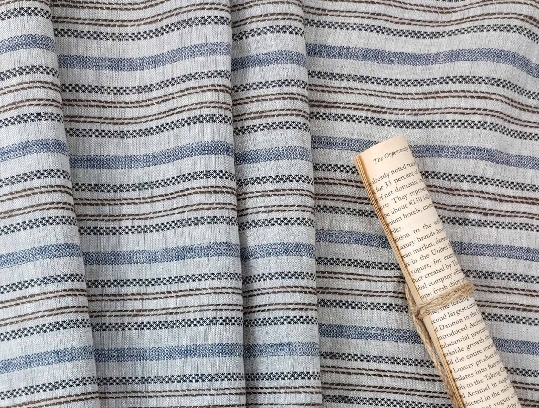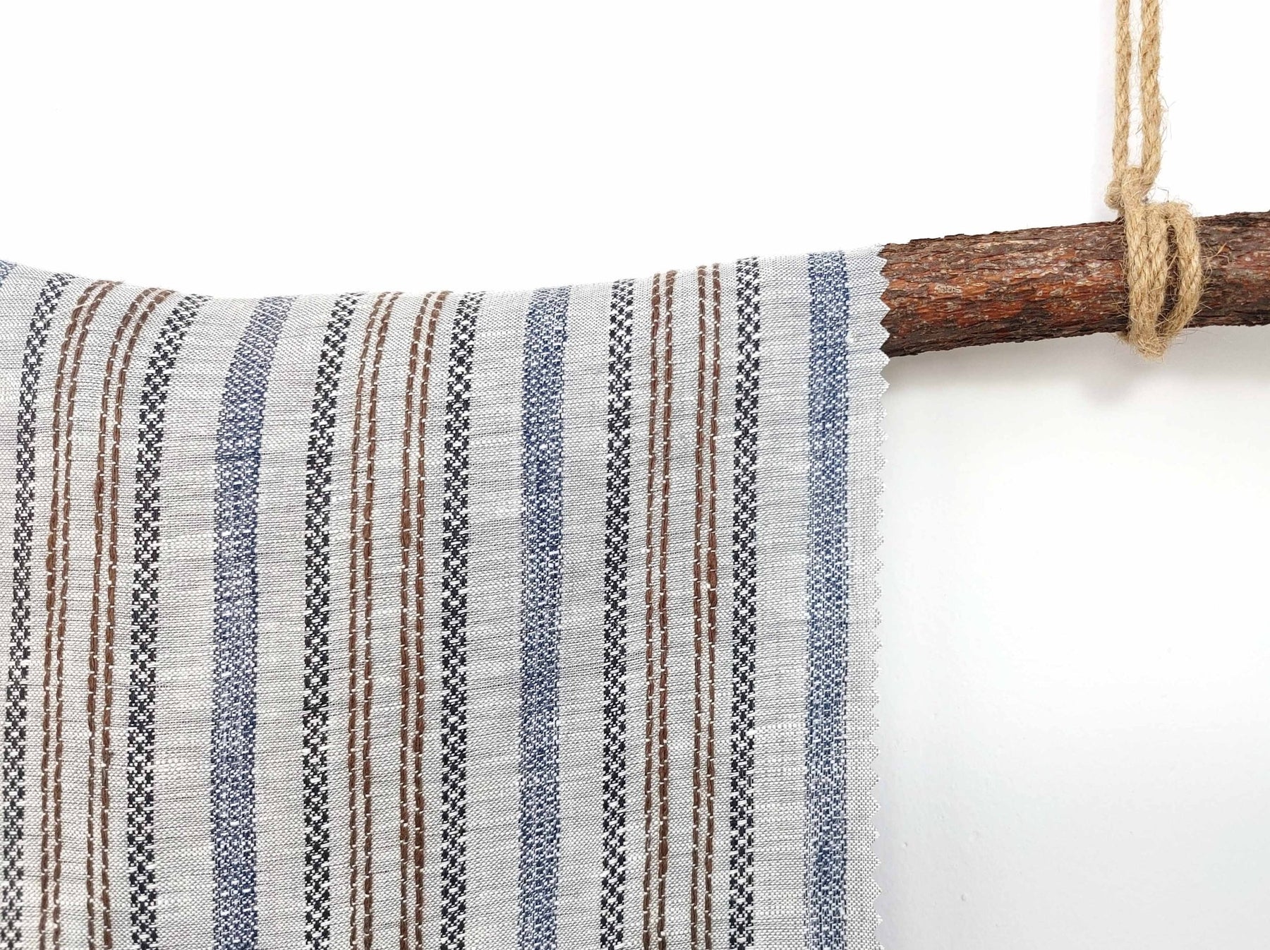 Originally introduced in 2018 and restocked on March 15th, 2024, this fabric is a testament to classic craftsmanship with a modern twist. Made from 100% Linen Fabric Jacquard Stripe, its standout feature is its unique horizontal stripe pattern, achieved through four different weaving structures. While initially slow to gain traction, it has since become a favorite among designers, crafters, and DIY enthusiasts for its versatility and charm.
