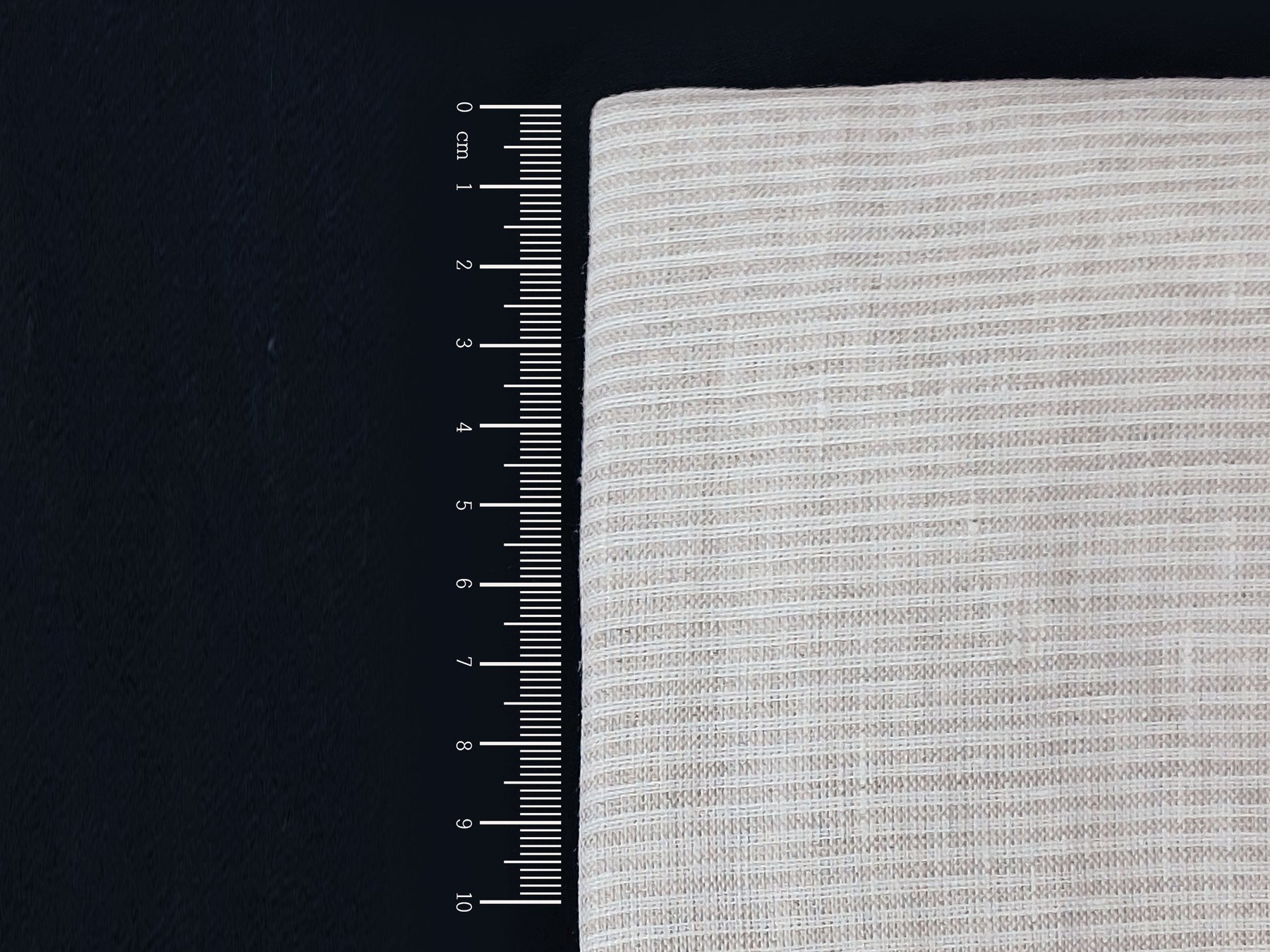This elegant 100% linen fabric features thin light beige horizontal stripes on a classic plain weave, offering a refined and minimal aesthetic. Made from fine linen yarn (14s), this fabric is pre-washed for a soft, comfortable hand feel, making it an excellent choice for garments, home décor, and accessories.