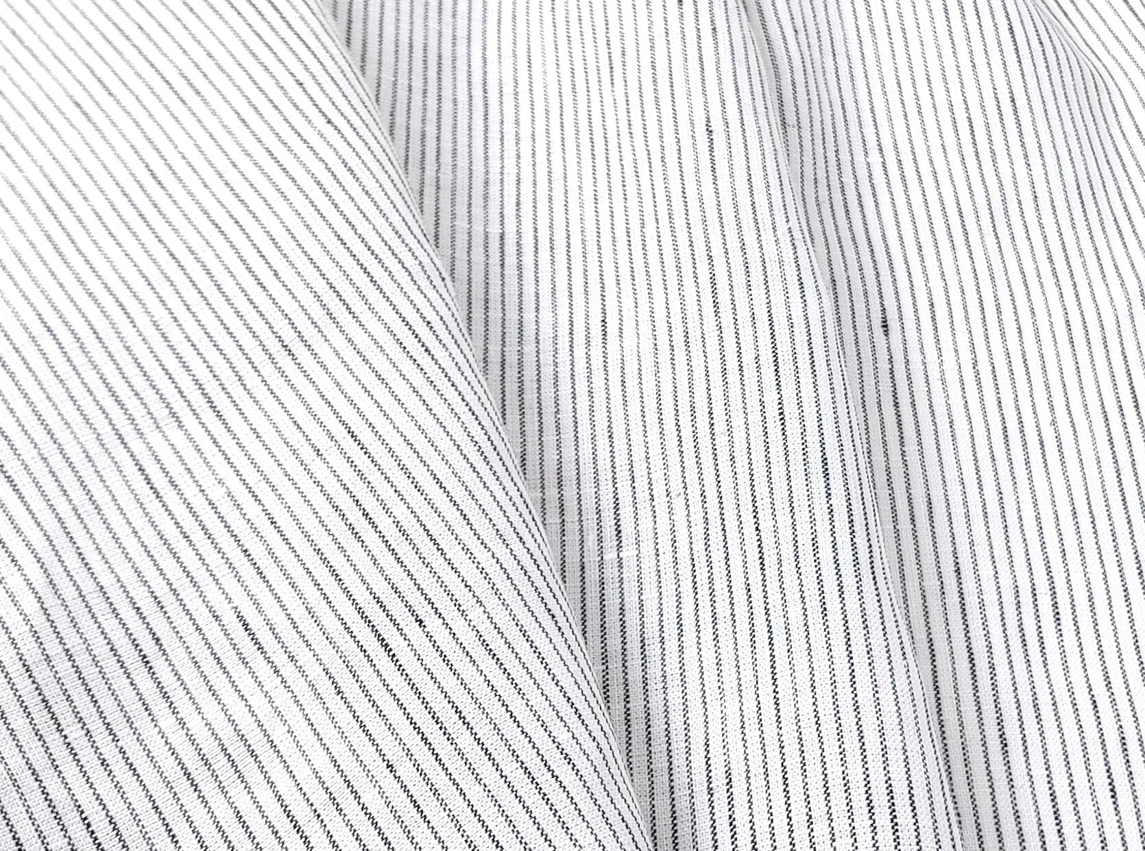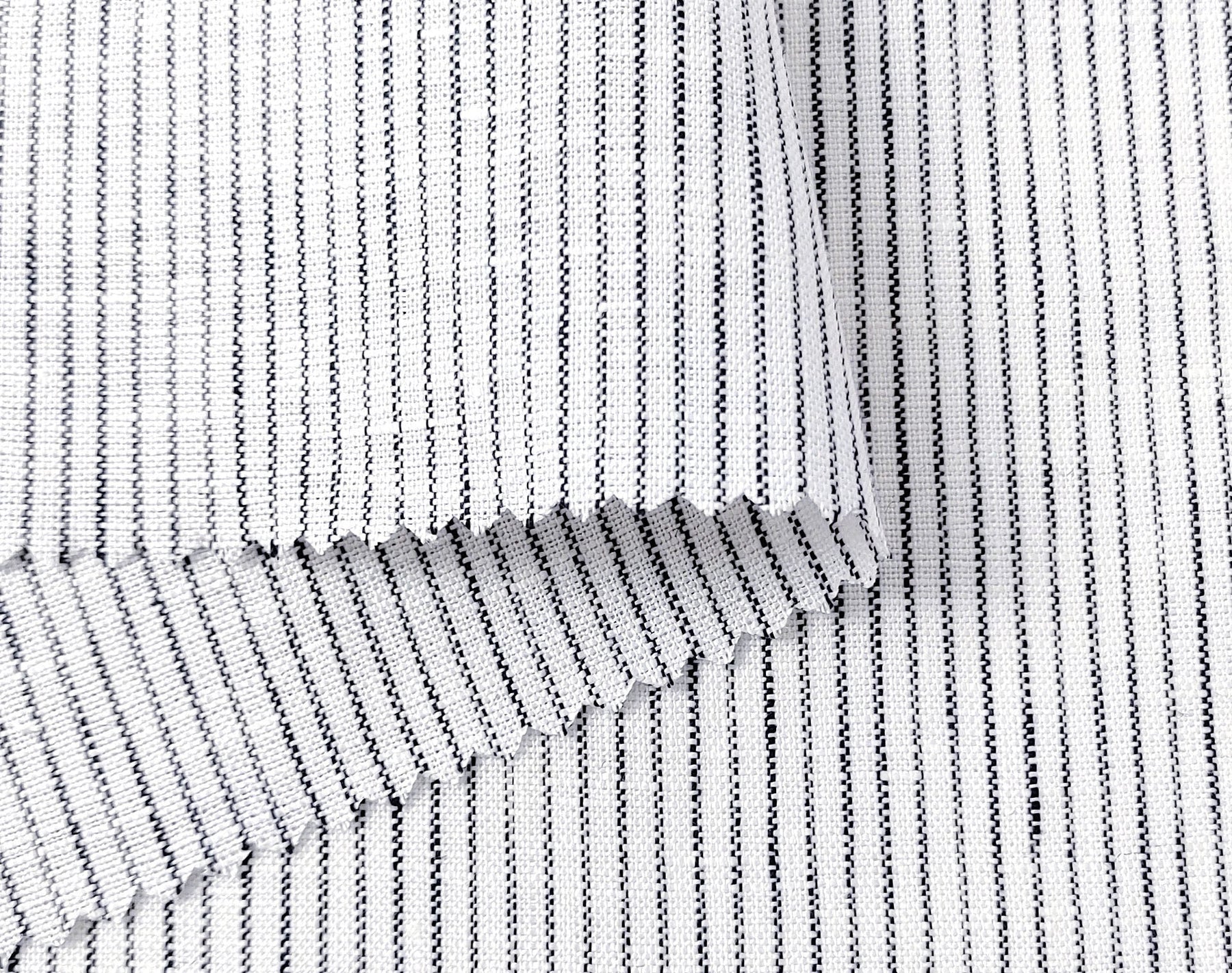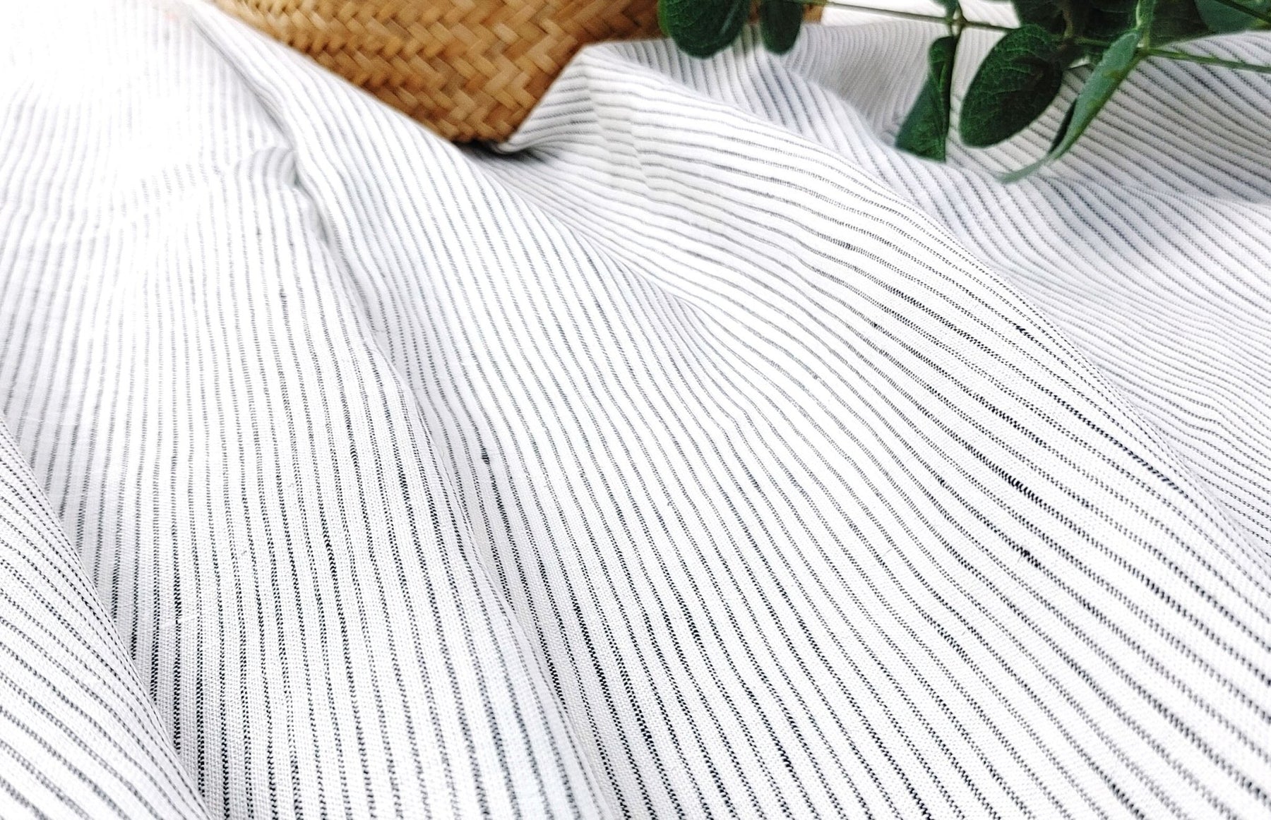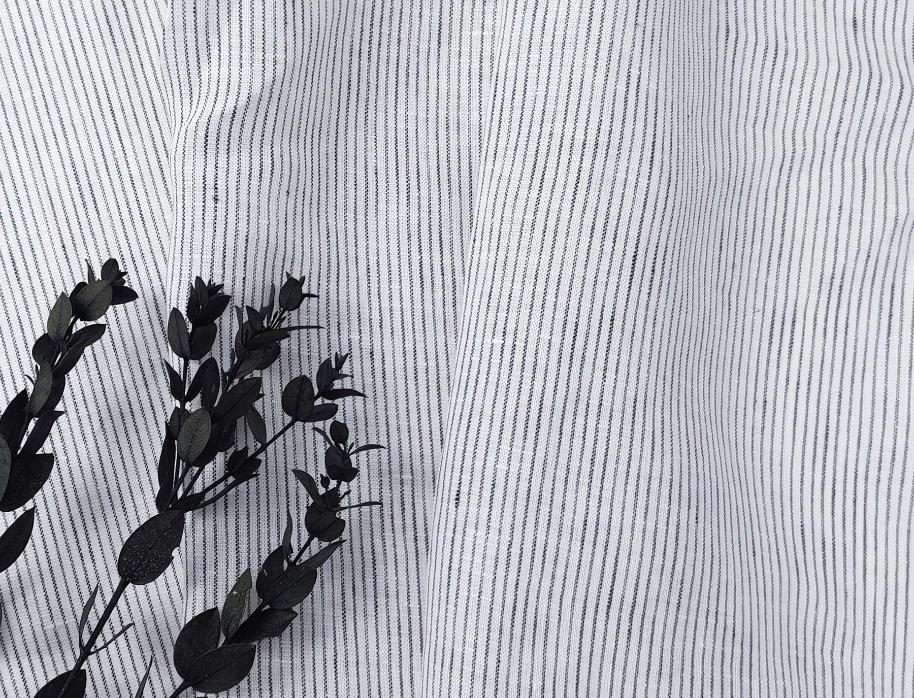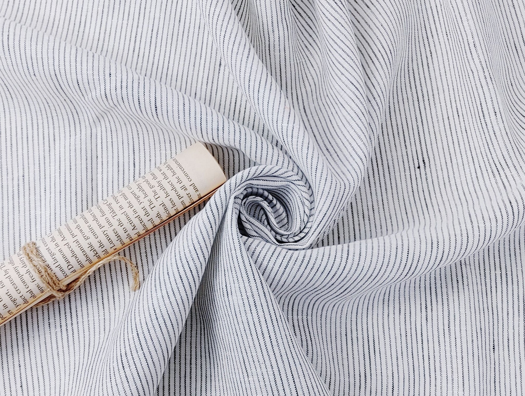 This fabric boasts a clean white base adorned with classic navy stripes, offering a timeless design suitable for a range of applications. With a modest weight of 143 g/sqm (4.22 oz per square yard), this linen fabric provides a comfortable and breathable option for various projects.