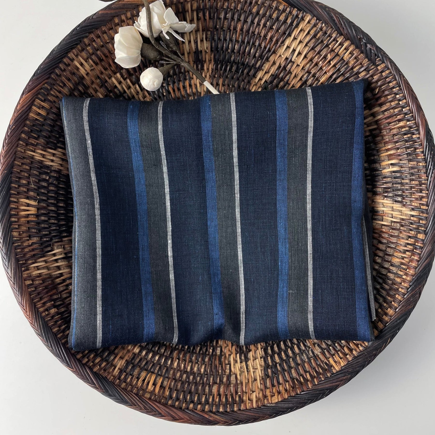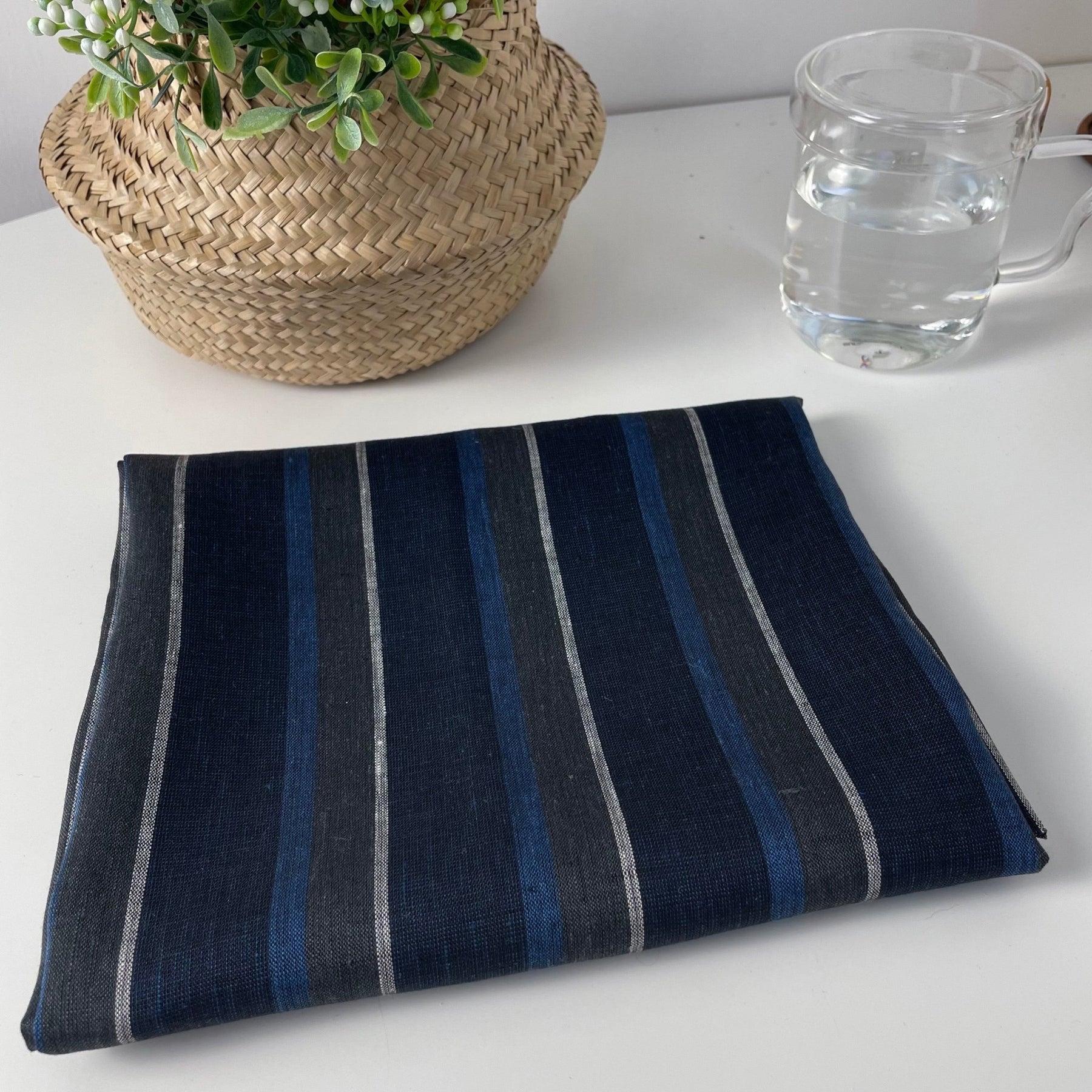 100% linen fabric with stripe pattern.