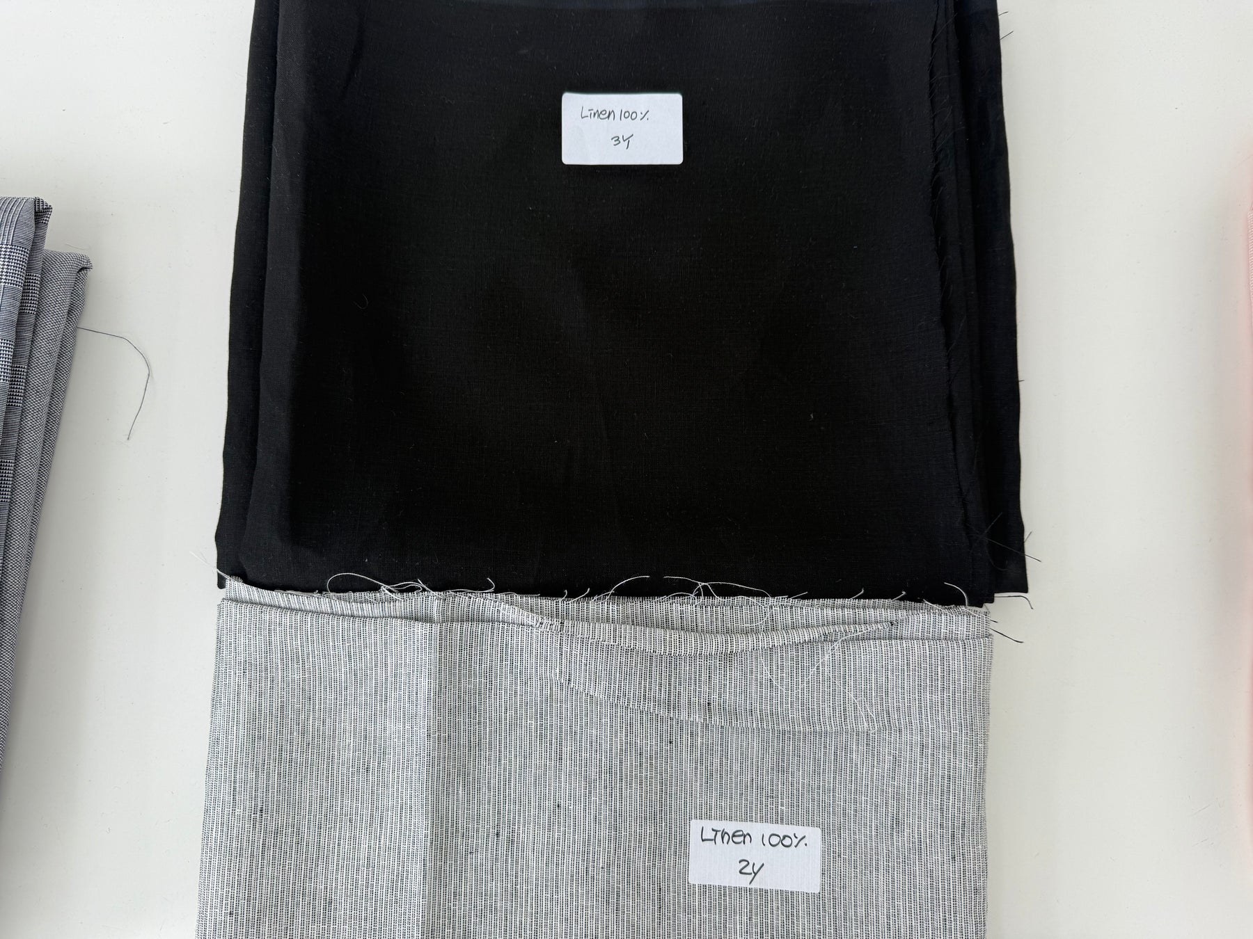 Total 24.5y, 9 fabrics Get creative with our Linen Fabric Surprise Box! Inside, you'll find kinds of fabric, including 100% Linen, Linen/Cotton, Linen/Nylon/Cotton, Linen/Rayon Each piece ranges from 2~ 3 yards, giving you a total of 24.5 yards of fabric to work with.