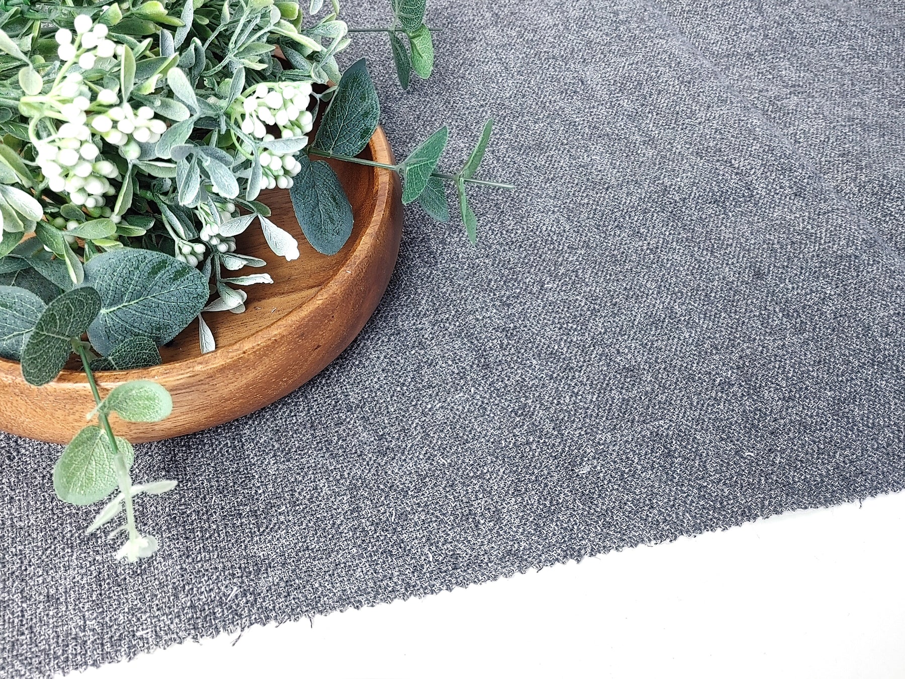 This double-face fabric offers a unique combination of textures and tones. The face side is a sophisticated grey, created by twisting 100% linen grey yarn with a linen-polyester blend yarn for added durability and character. The back side, in contrast, is a soft ivory made from 100% cotton.