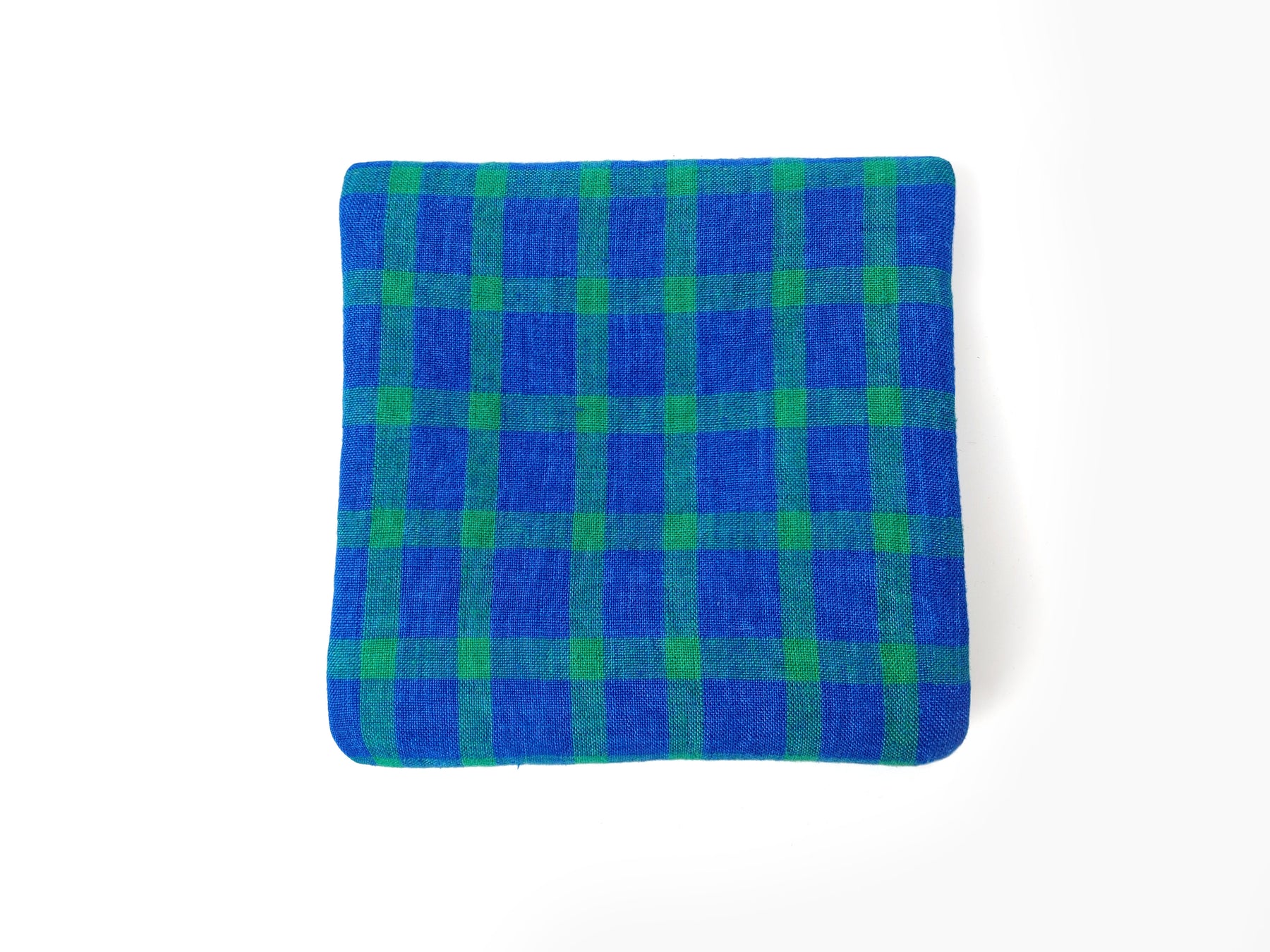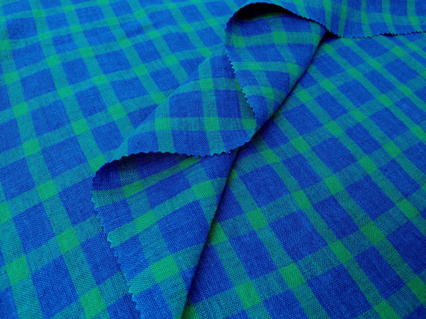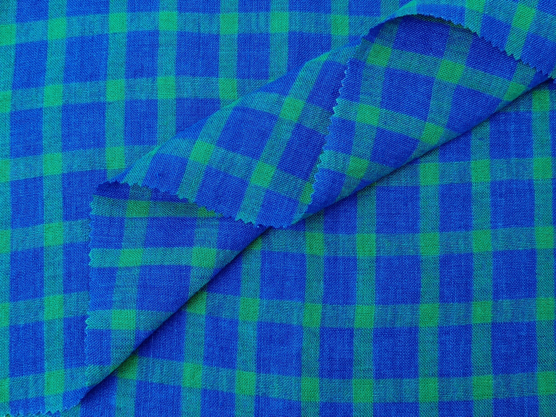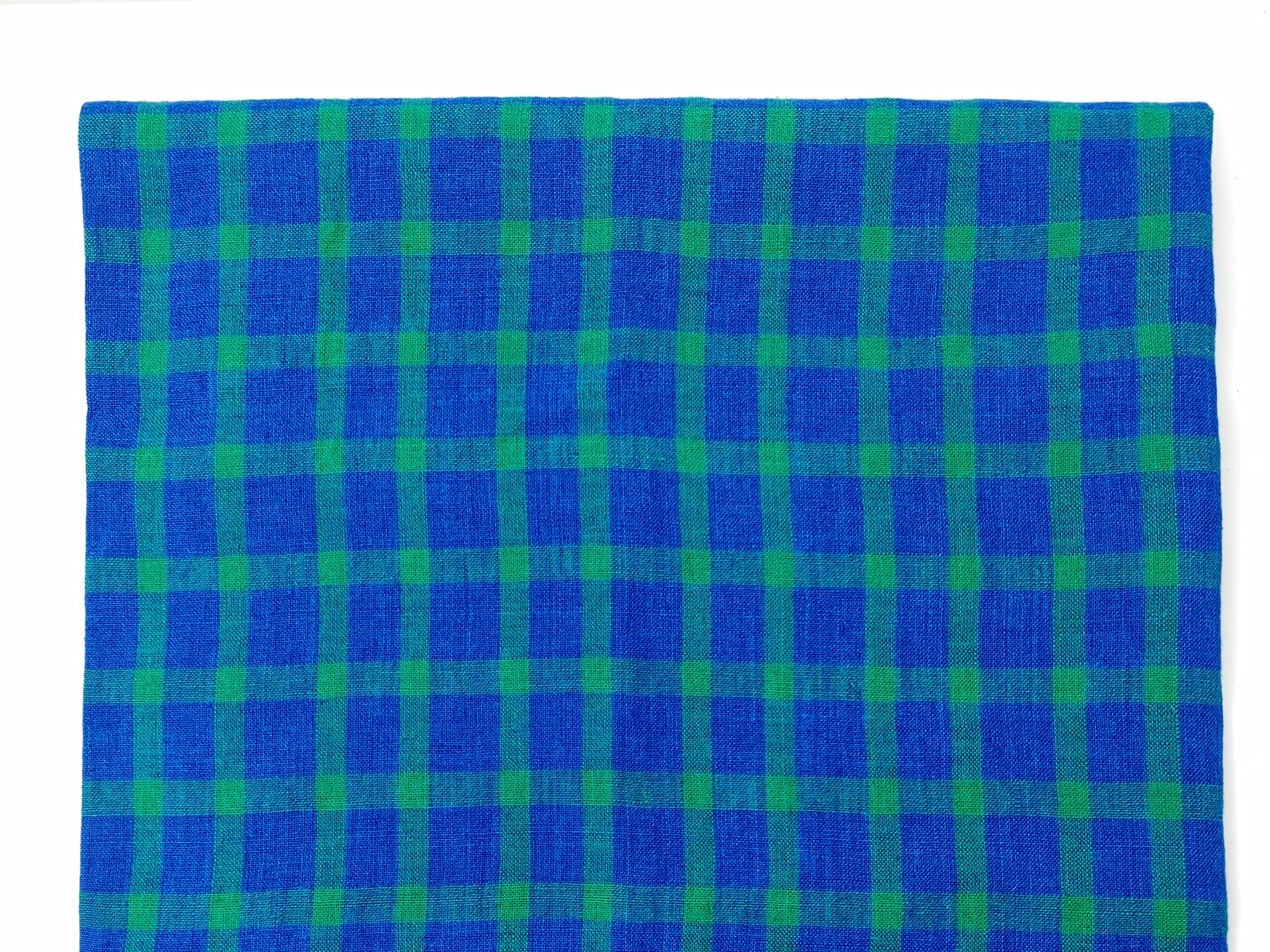 100% Linen Blue-Green Gingham Check Fabric – Vintage Delave Dyed 7567
