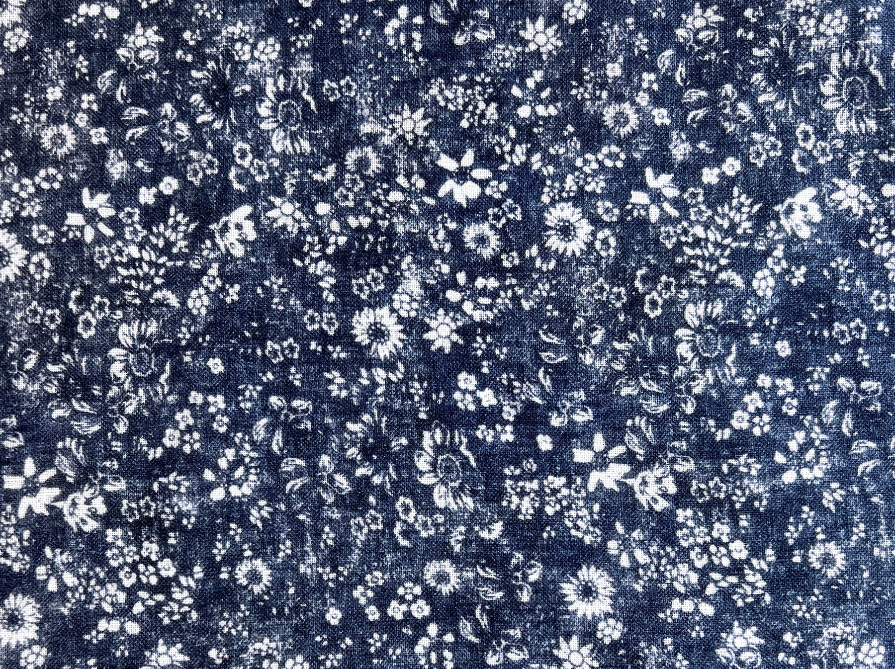 Linen Navy Flower Print (7374) - The Linen Lab - blue