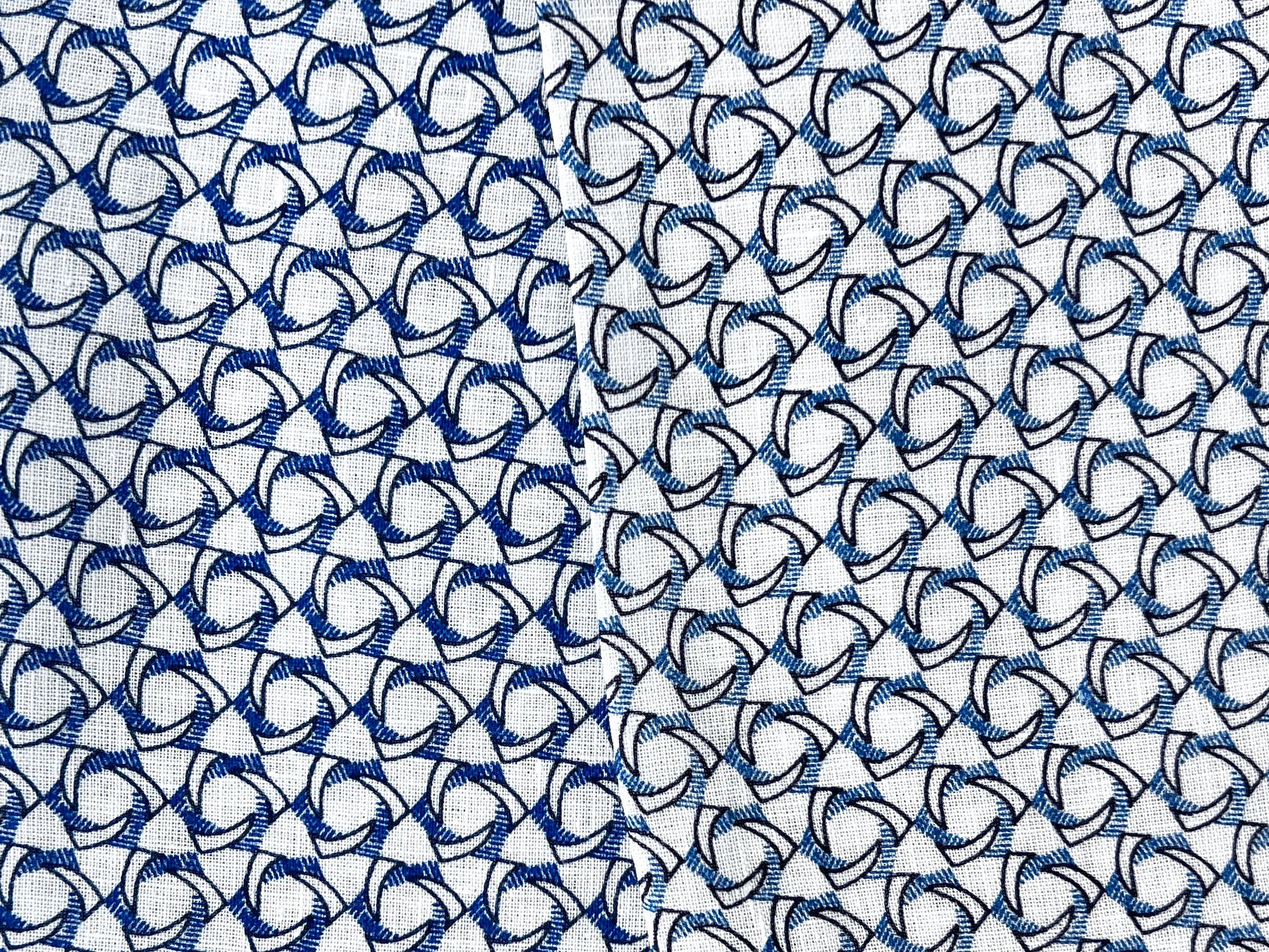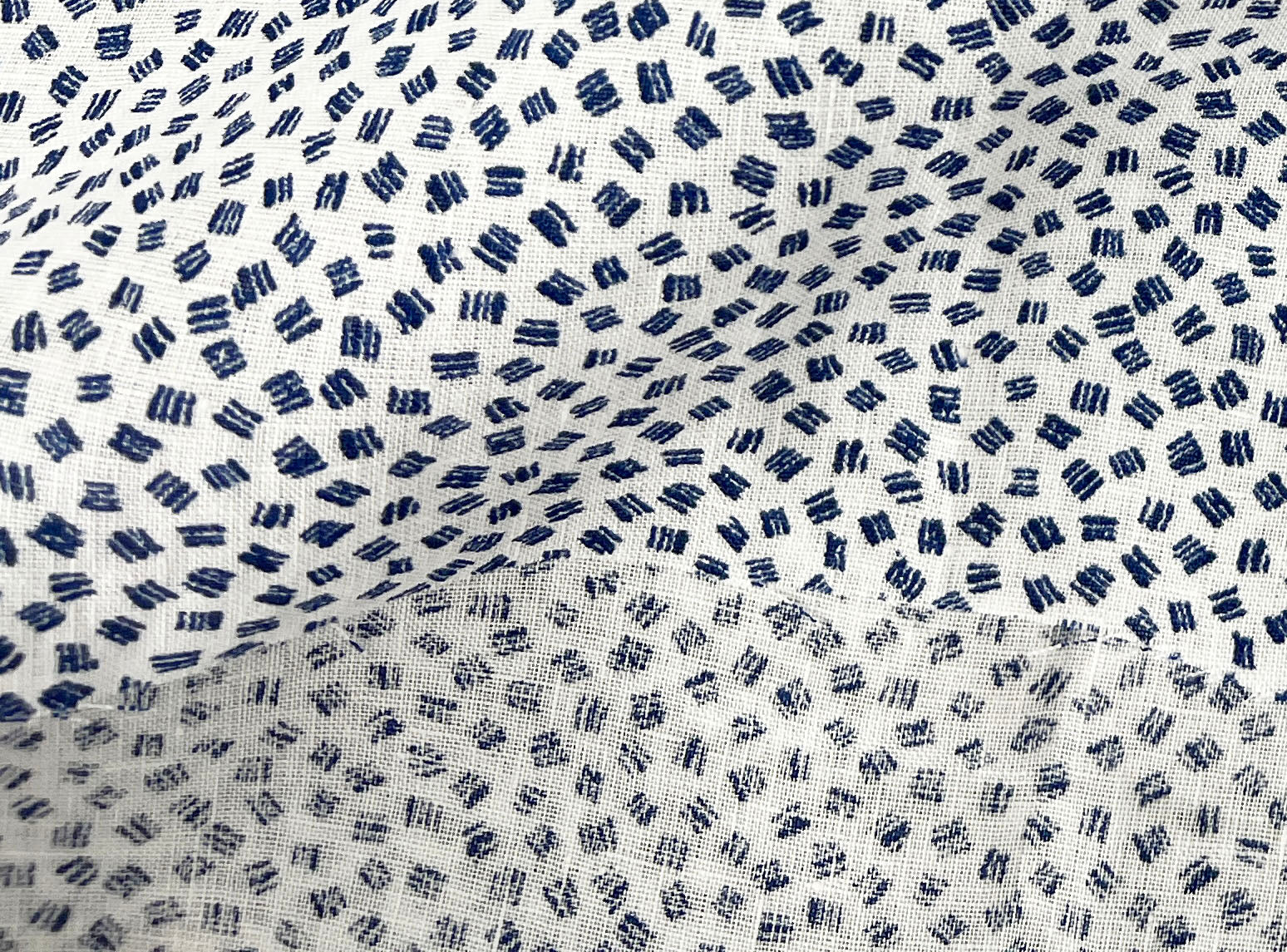 Linen Aqua Block Print Fabric (7373) - The Linen Lab - blue