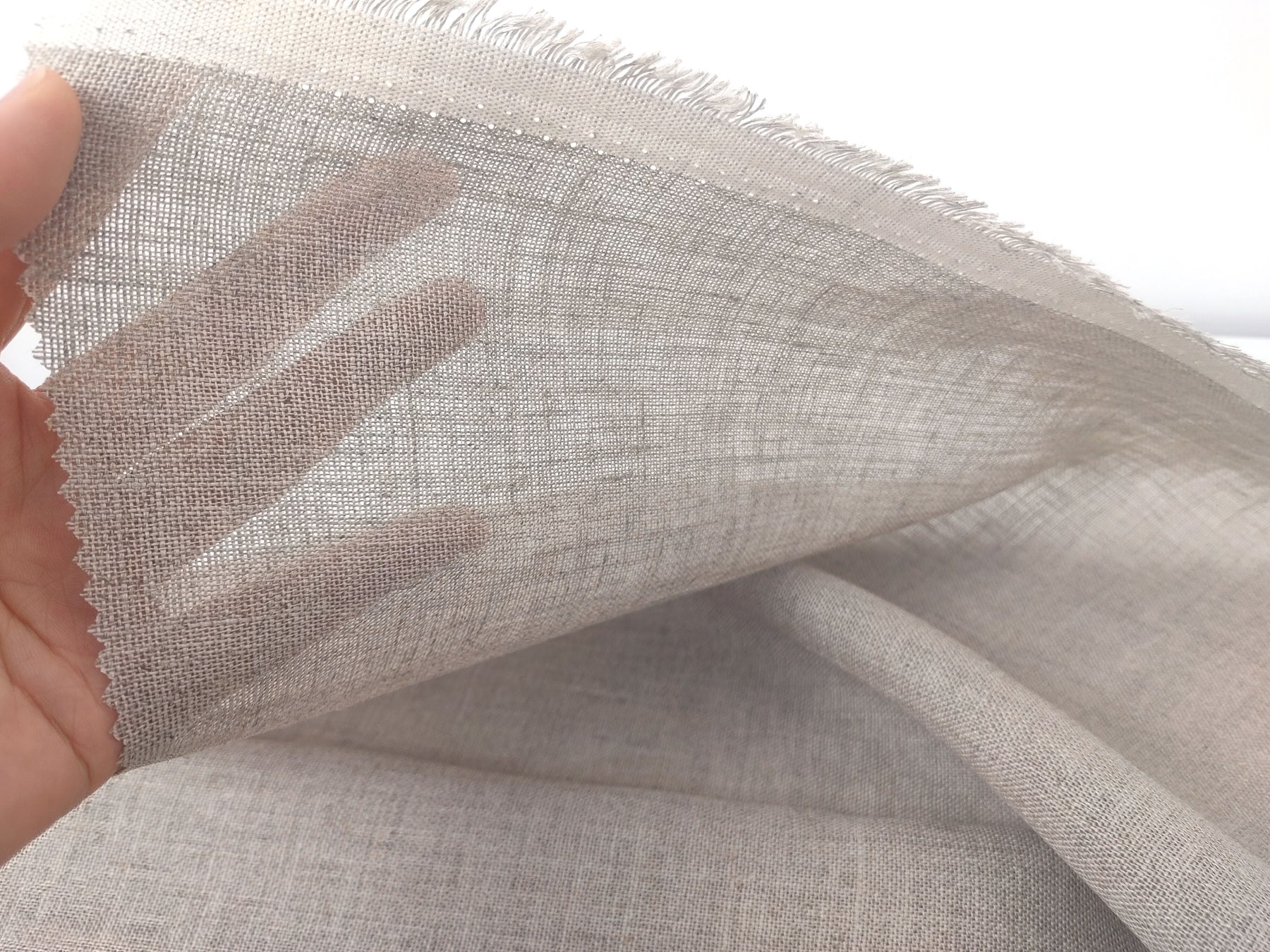 Lightweight at 145 gsm, it has a semi-sheer quality and a crisp, slightly stiff handfeel, offering structure while remaining breathable. Its low density lets light pass through softly, making it ideal for natural-inspired designs and eco-conscious creations.