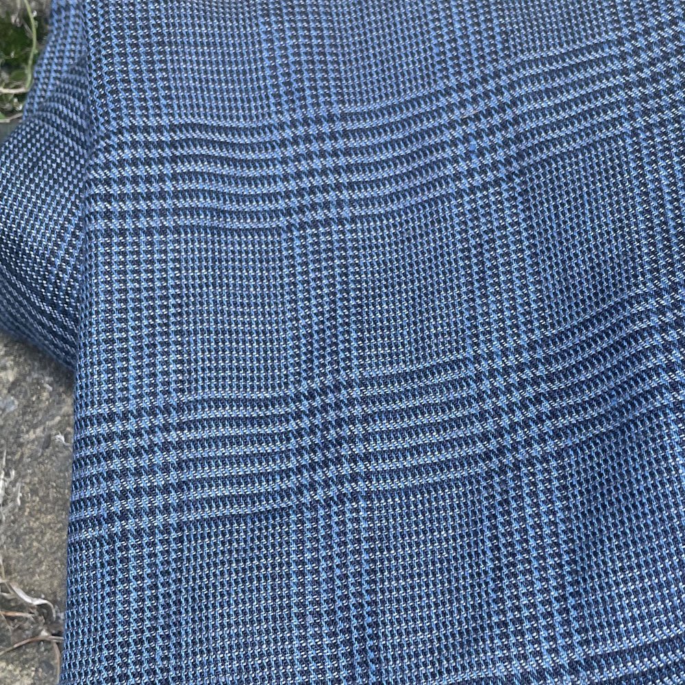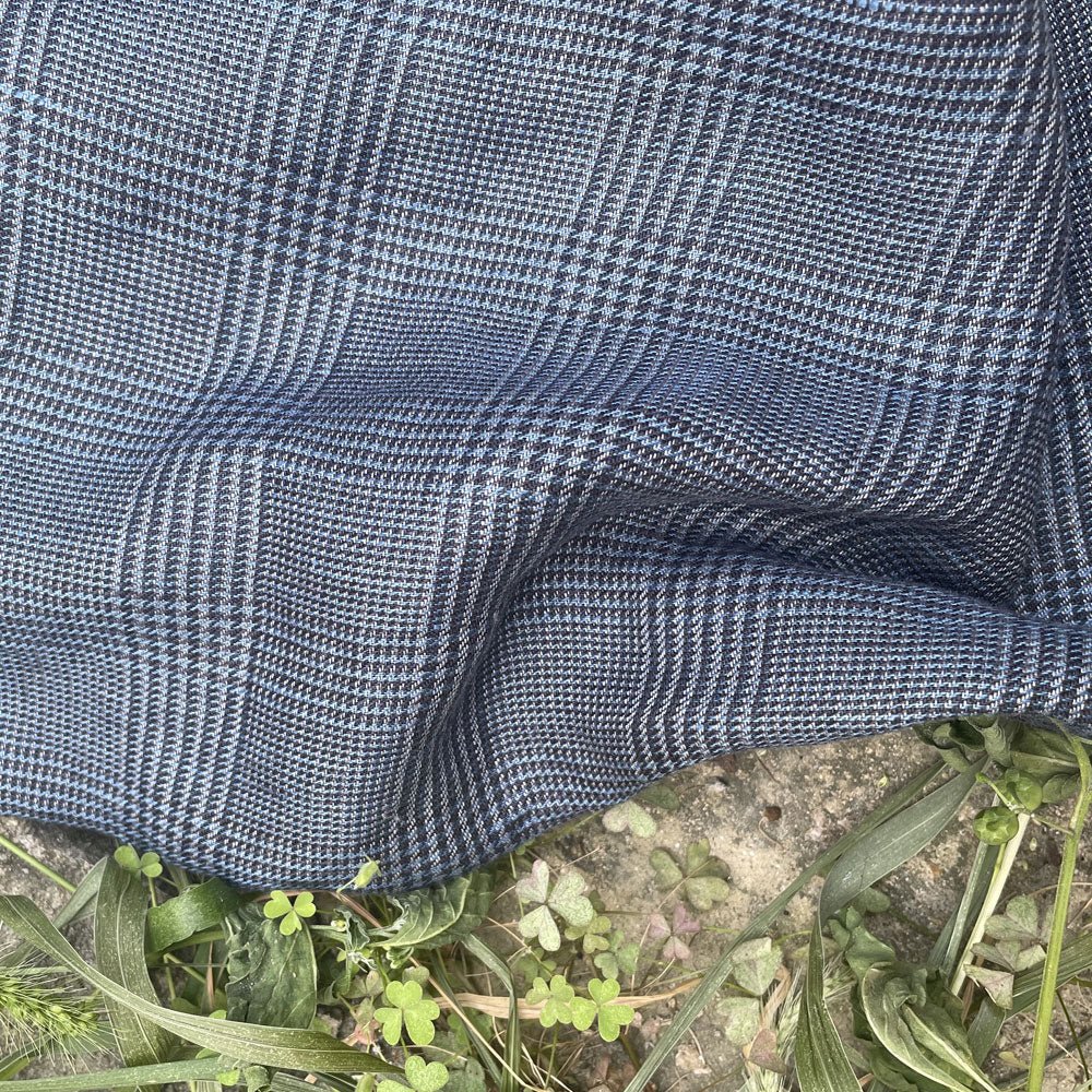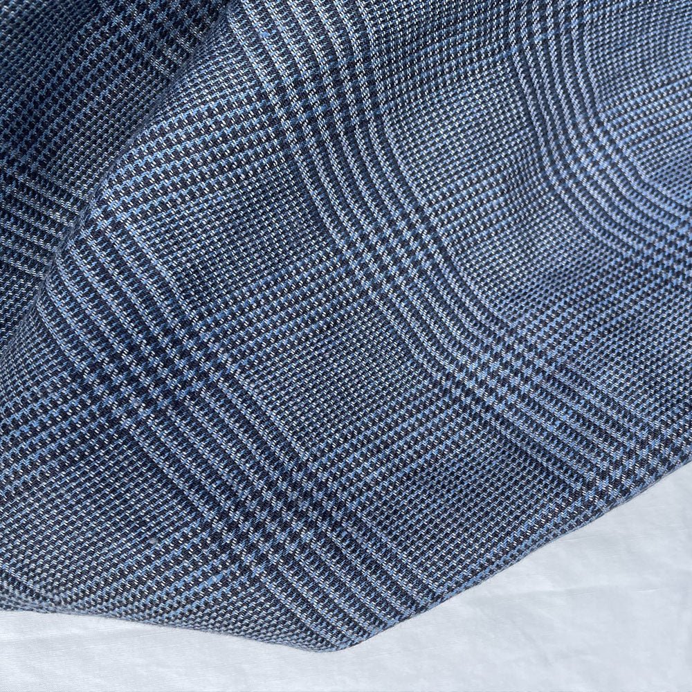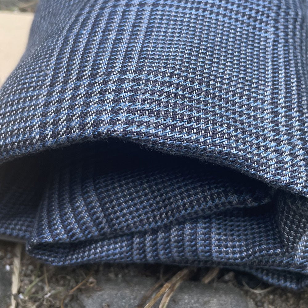 Linen 40lea 14s Twill Houndstooth Plaid Fabric (6756) - The Linen Lab - Navy