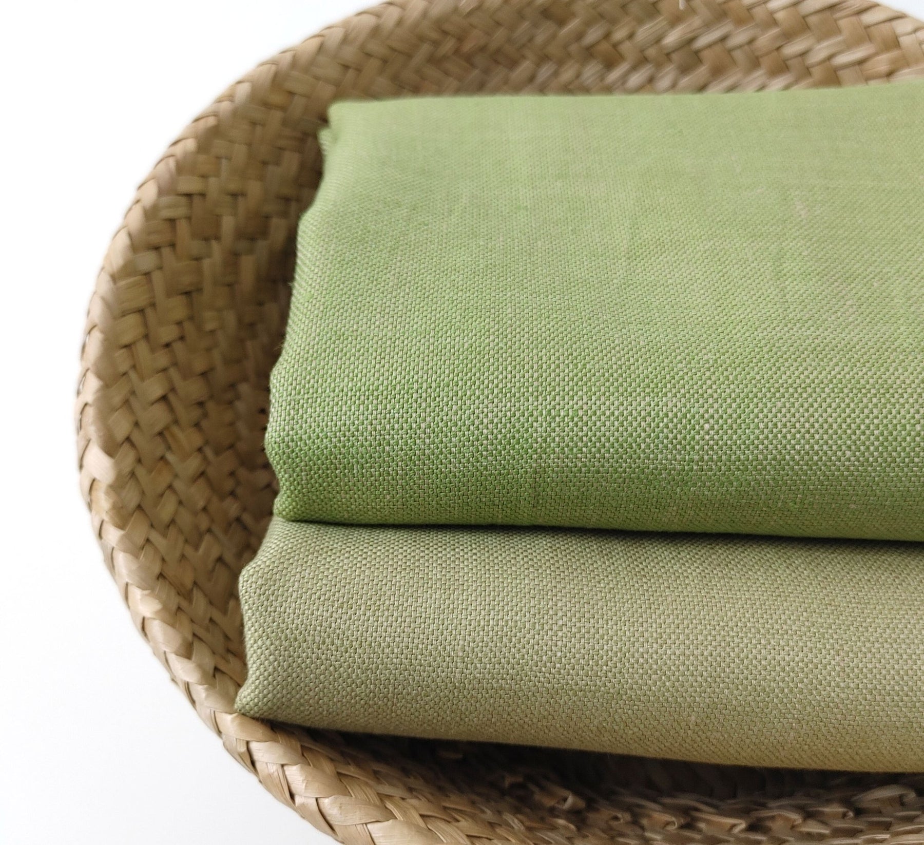 Pre-washed for comfort, it comes in two versatile colorways: Green and Greenish Beige. Ideal for a range of projects, this linen canvas chambray fabric combines quality with simplicity for your crafting needs.