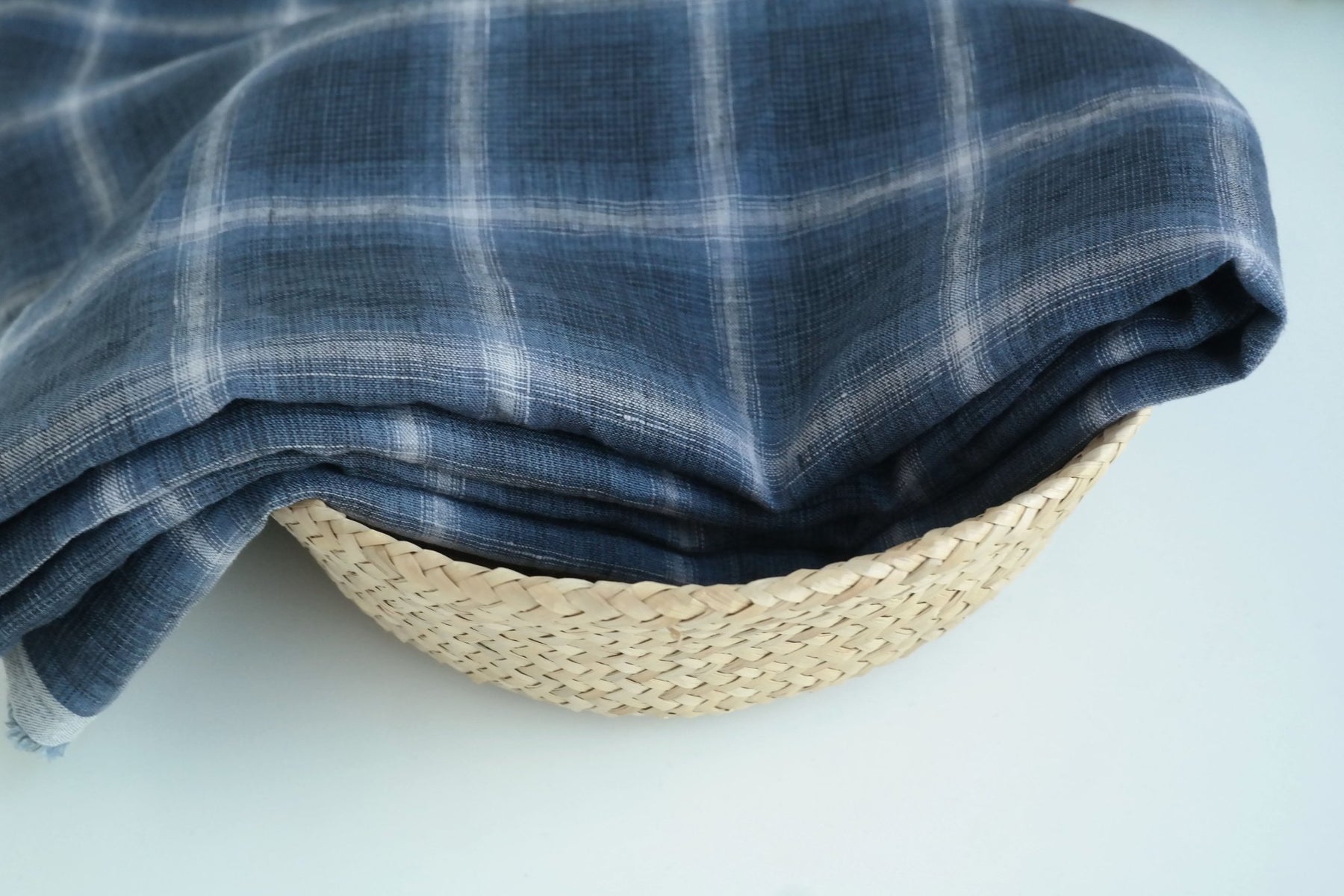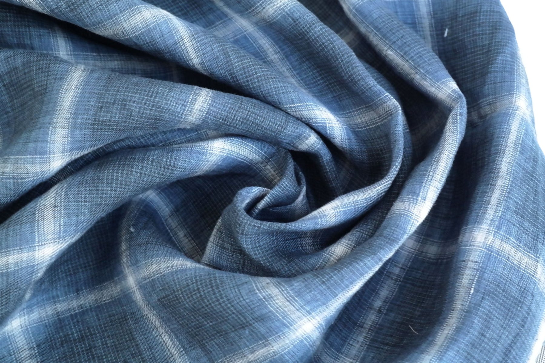 Linen Gradation Plaid Fabric (7324) - The Linen Lab - navy