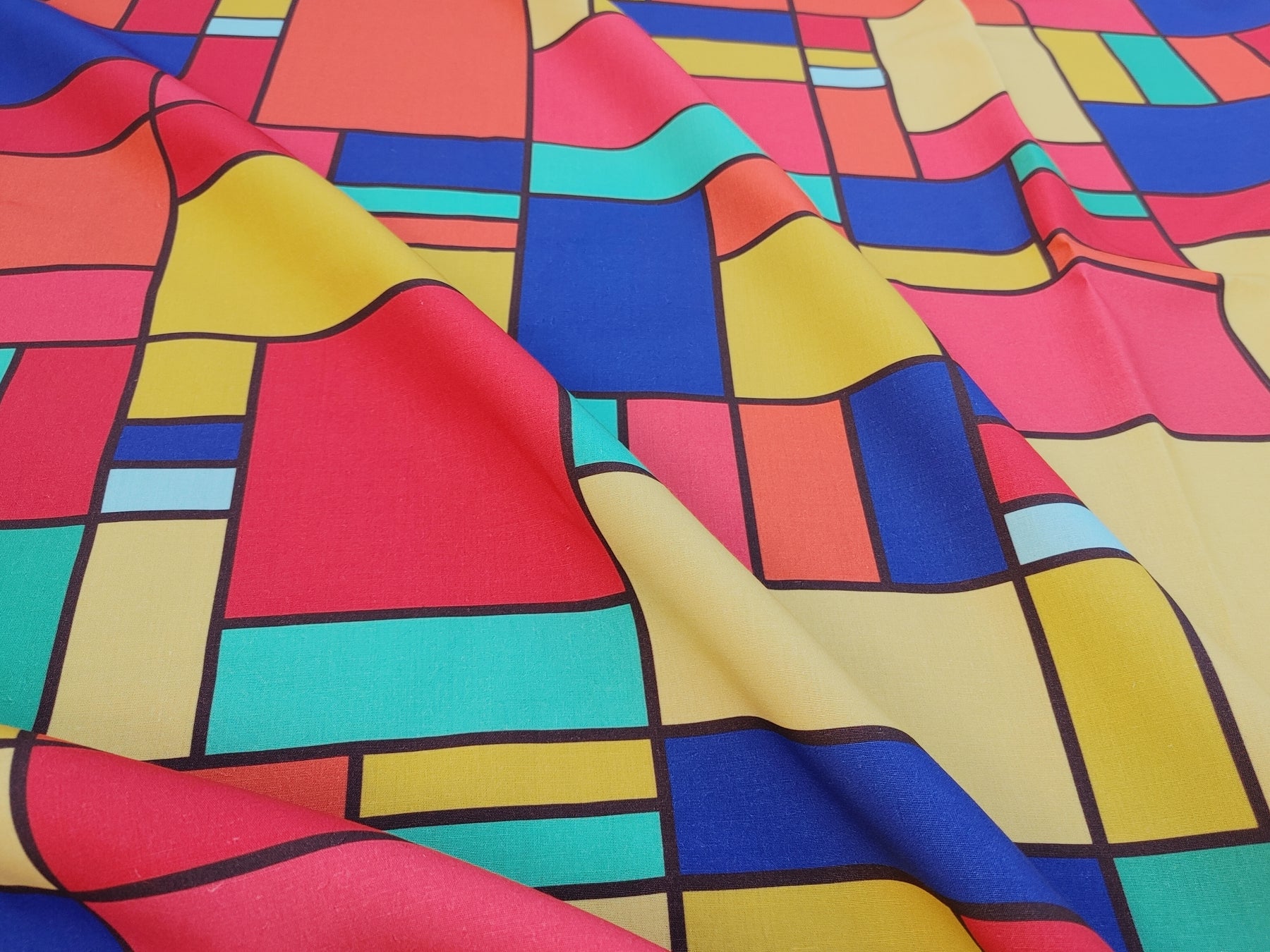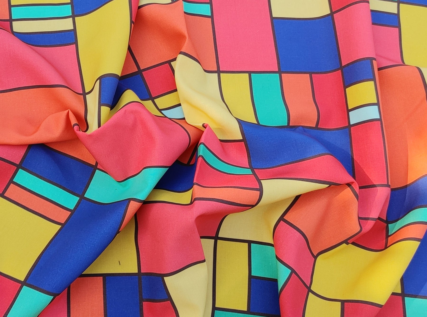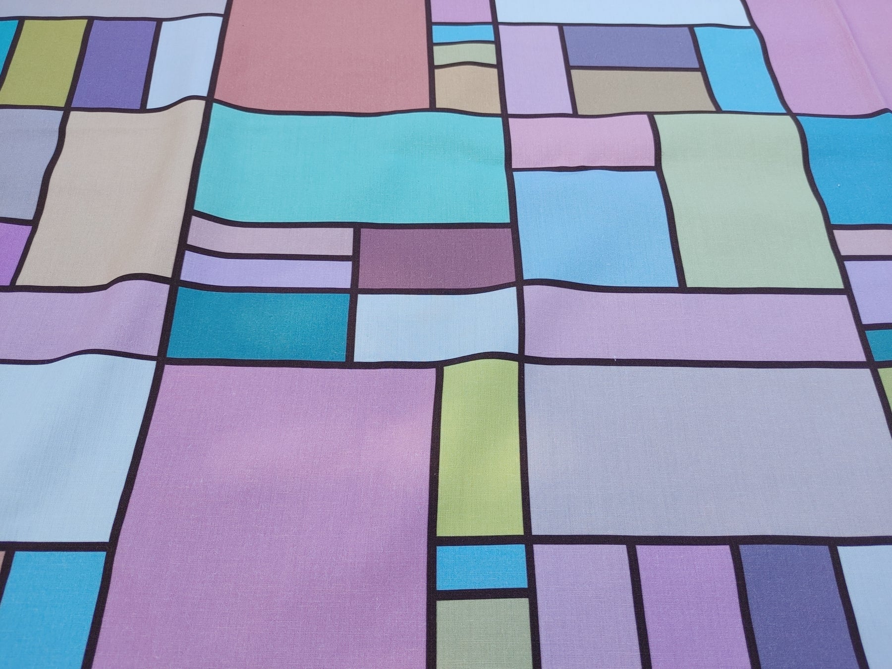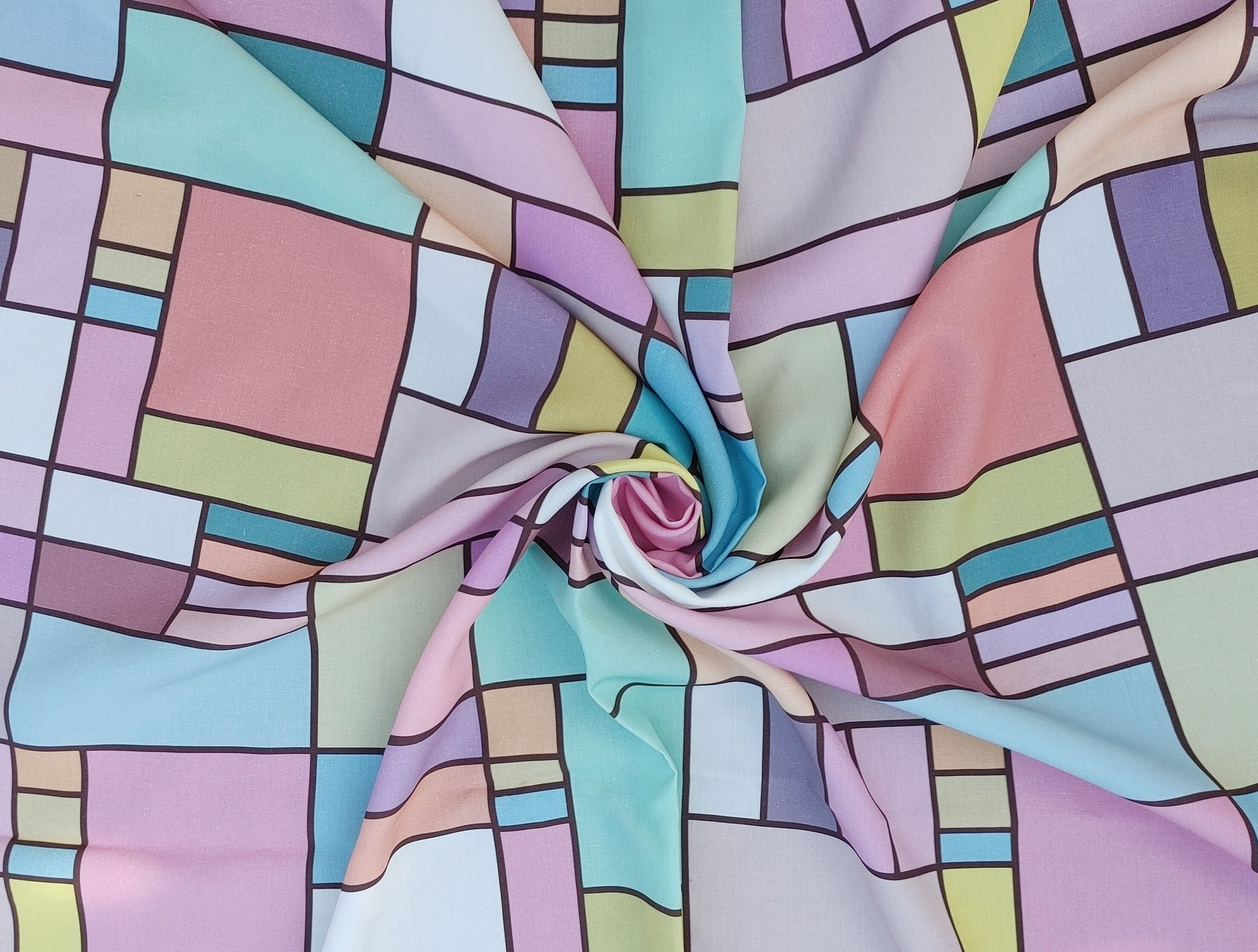 Morning Calm Jogakbo Print Fabric draws inspiration from the traditional Korean patchwork art known as jogakbo. This craft involves sewing small pieces of leftover fabric, often silk or cotton, into larger, beautifully patterned cloths. Jogakbo originated from bojagi, Korean wrapping cloths used for practical purposes like covering and carrying items or wrapping gifts. Over time, jogakbo evolved into an artistic expression, celebrated for its vibrant color combinations, intricate geometric designs, and cultural significance.