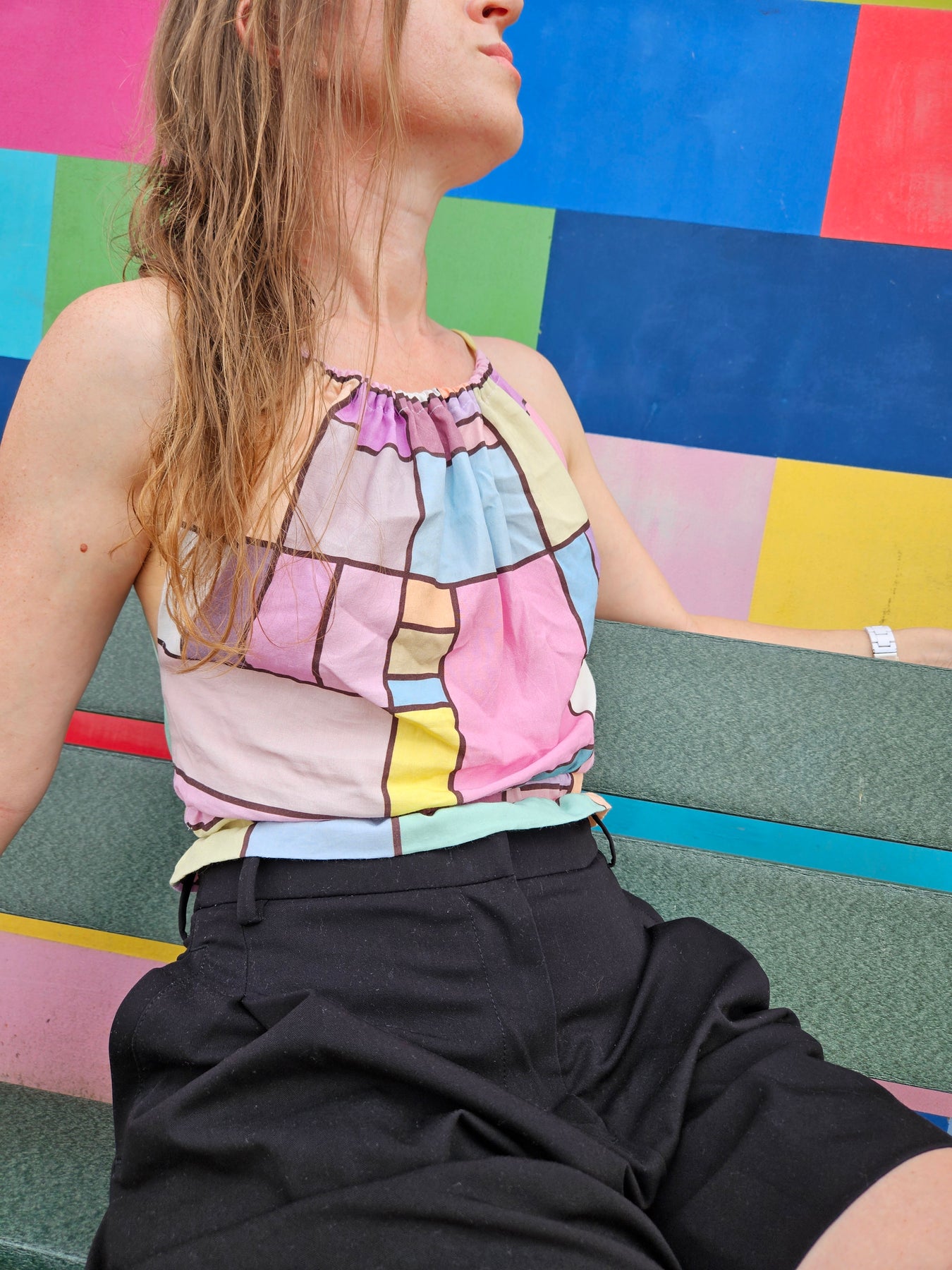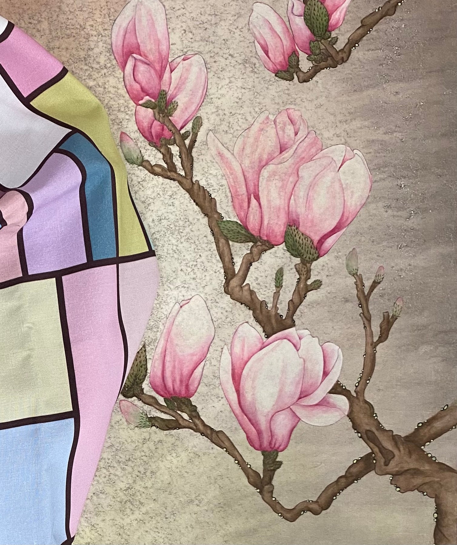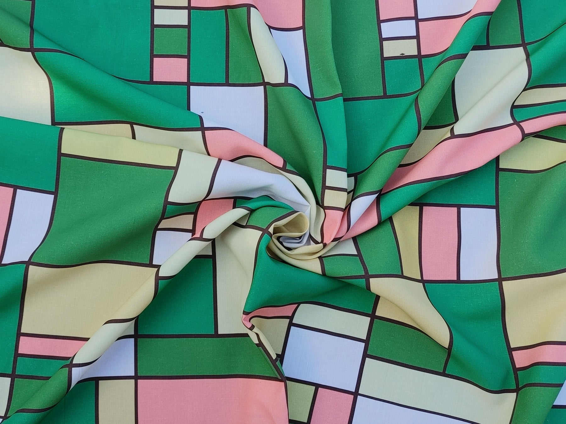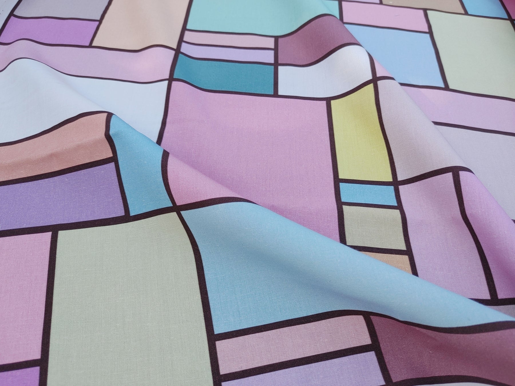 Morning Calm Jogakbo Print Fabric draws inspiration from the traditional Korean patchwork art known as jogakbo. This craft involves sewing small pieces of leftover fabric, often silk or cotton, into larger, beautifully patterned cloths. Jogakbo originated from bojagi, Korean wrapping cloths used for practical purposes like covering and carrying items or wrapping gifts. Over time, jogakbo evolved into an artistic expression, celebrated for its vibrant color combinations, intricate geometric designs, and cultural significance.