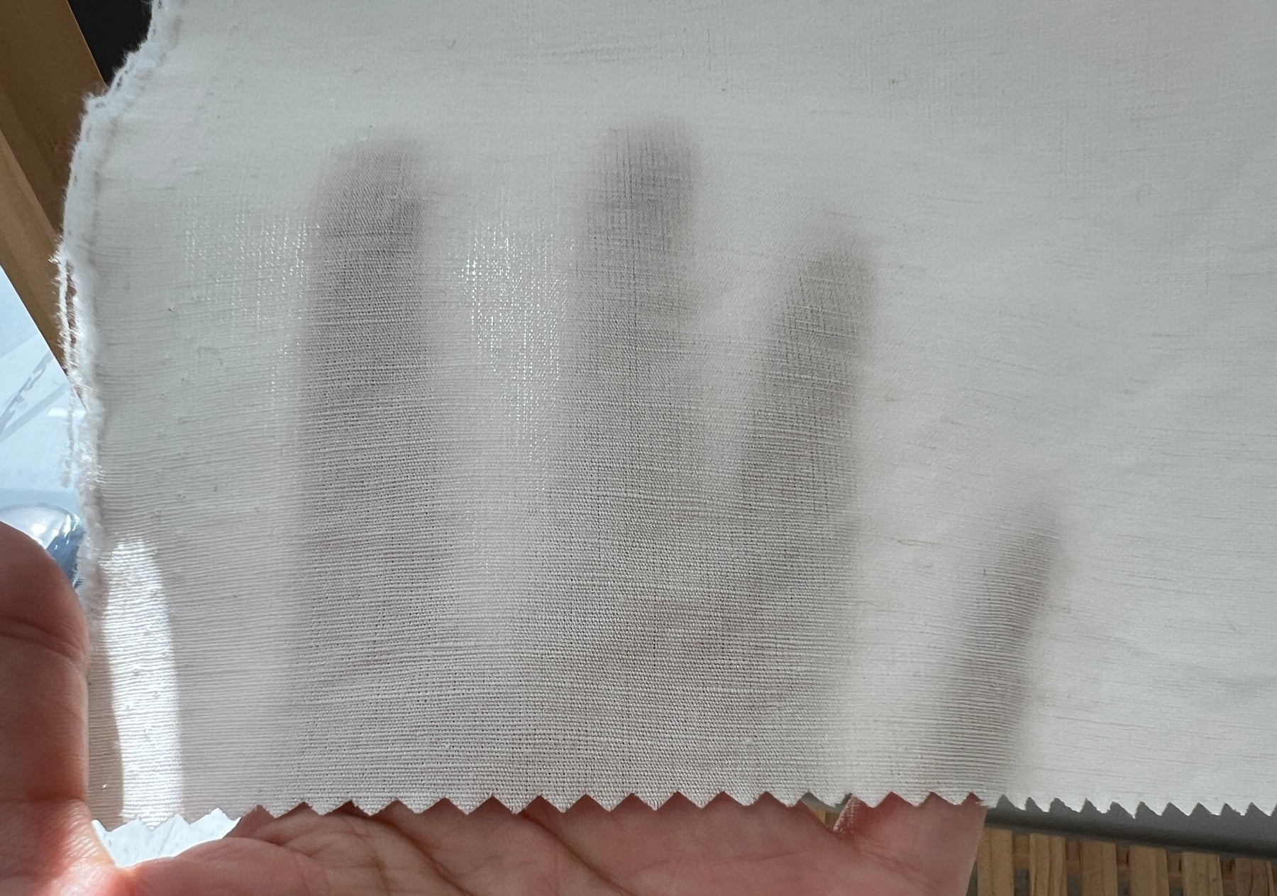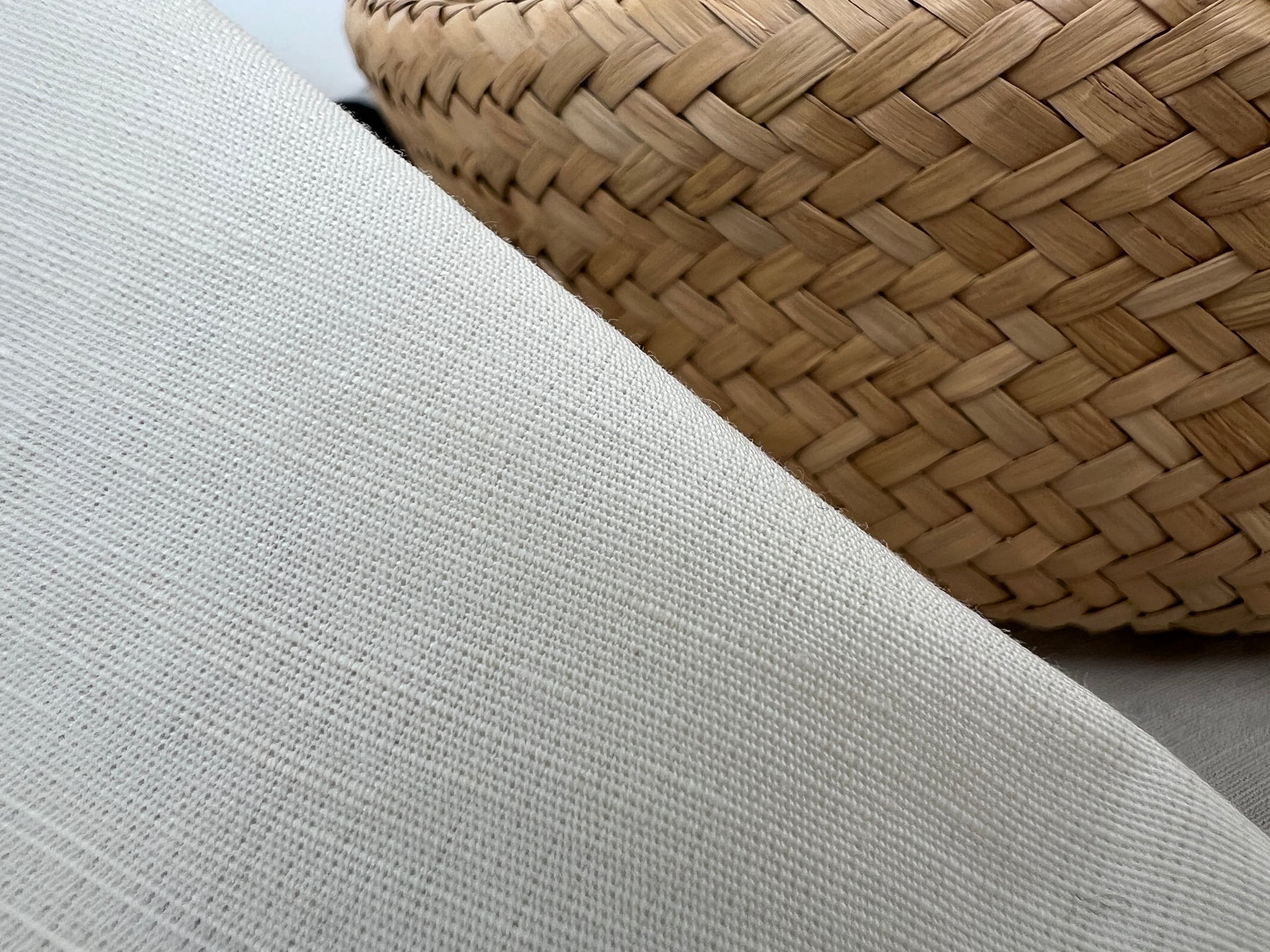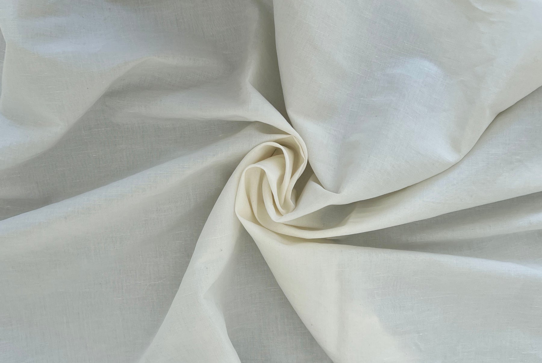 Bring your designs to life on our premium linen-cotton blend fabric. Woven with compact cotton 40s yarn in the warp and linen 14s in the weft, this plain weave fabric features a high thread density (130 x 56) for a smooth, structured finish. Despite its structure, it has a soft, pre-washed handfeel and drapes beautifully—ideal for both apparel and interior projects.