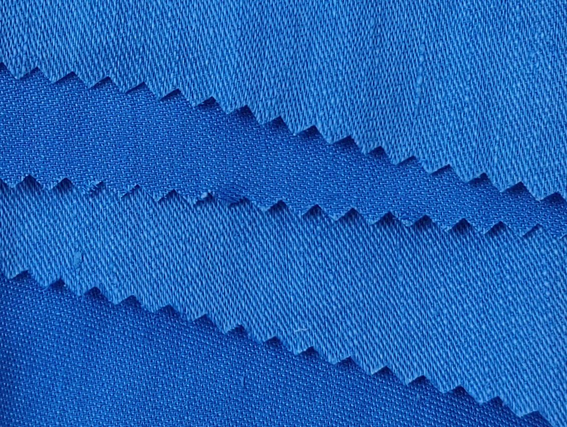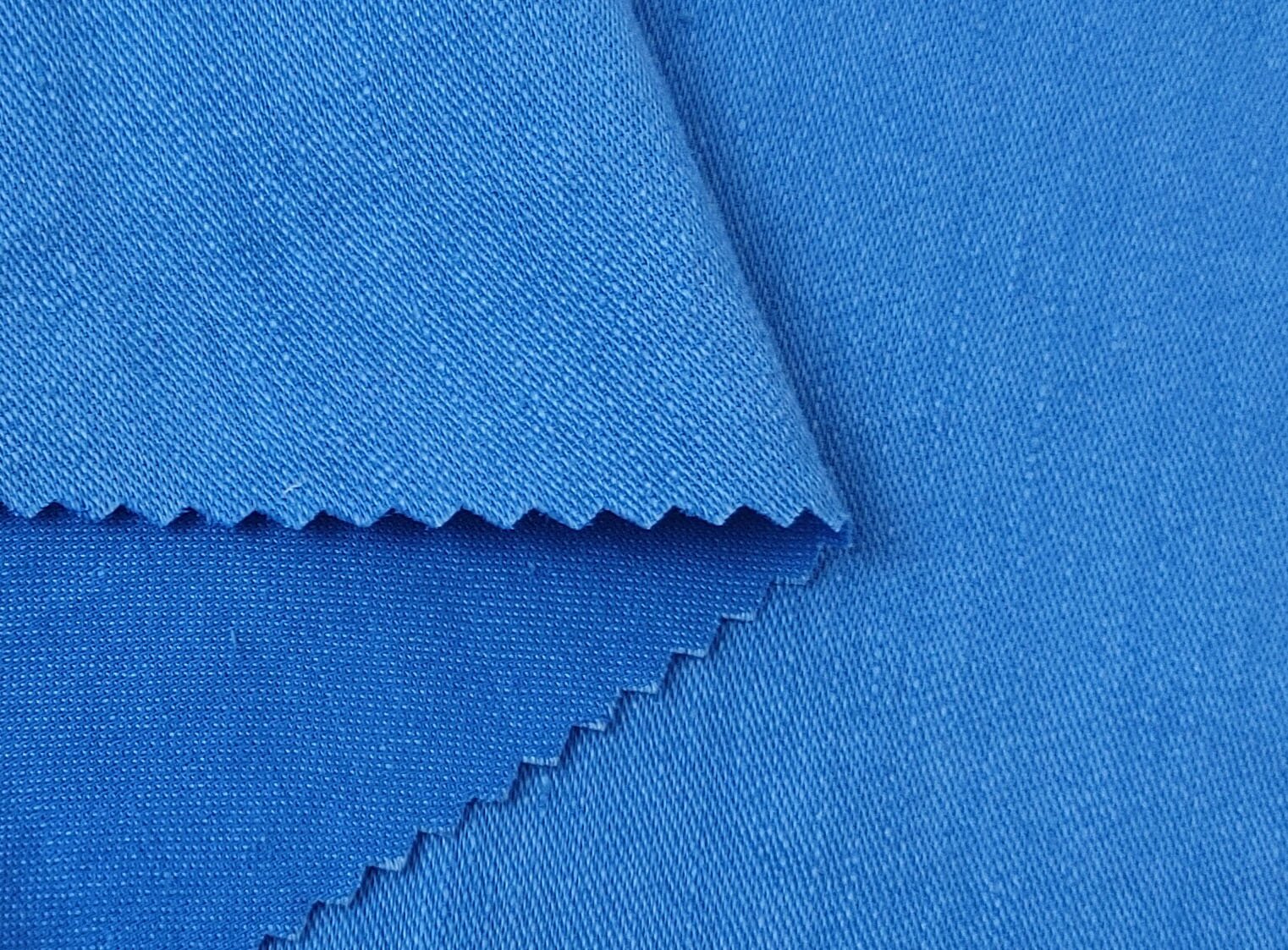Satin Elegance: Linen Rayon Fabric with Polished Satin Weave is a sophisticated choice for your creative projects. The fabric features a carefully crafted composition with a fine linen yarn (14s) for the warp and a rayon filament yarn with high twisting for the weft. This high-twisted filament yarn introduces a subtle natural stretch effect, enhancing the fabric's versatility.